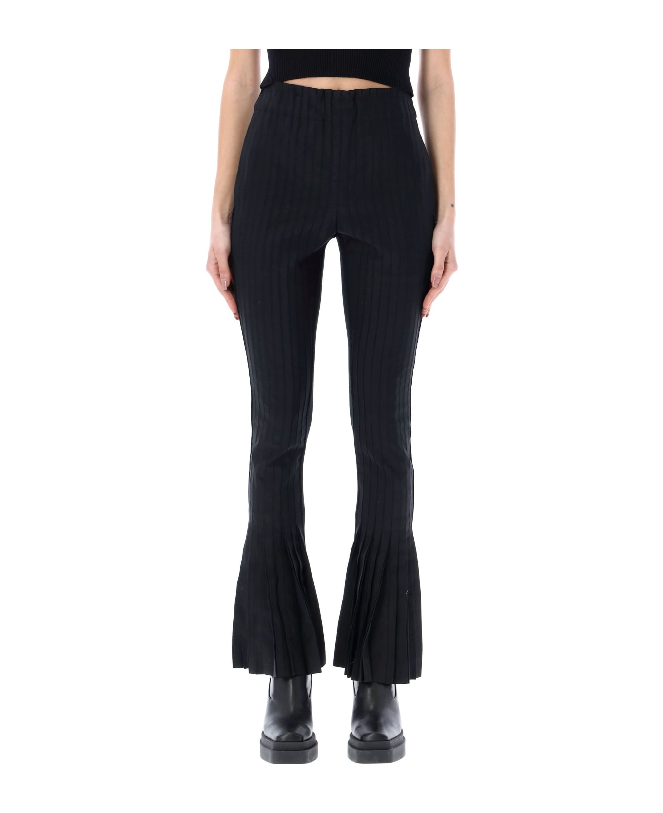 Flared Pants By Sacai. Featuring: High Waist Slit Pockets Pleated Front Ribbed Back Bootcut Model Is 1,72 M Tall And She Is Wearing Size 2