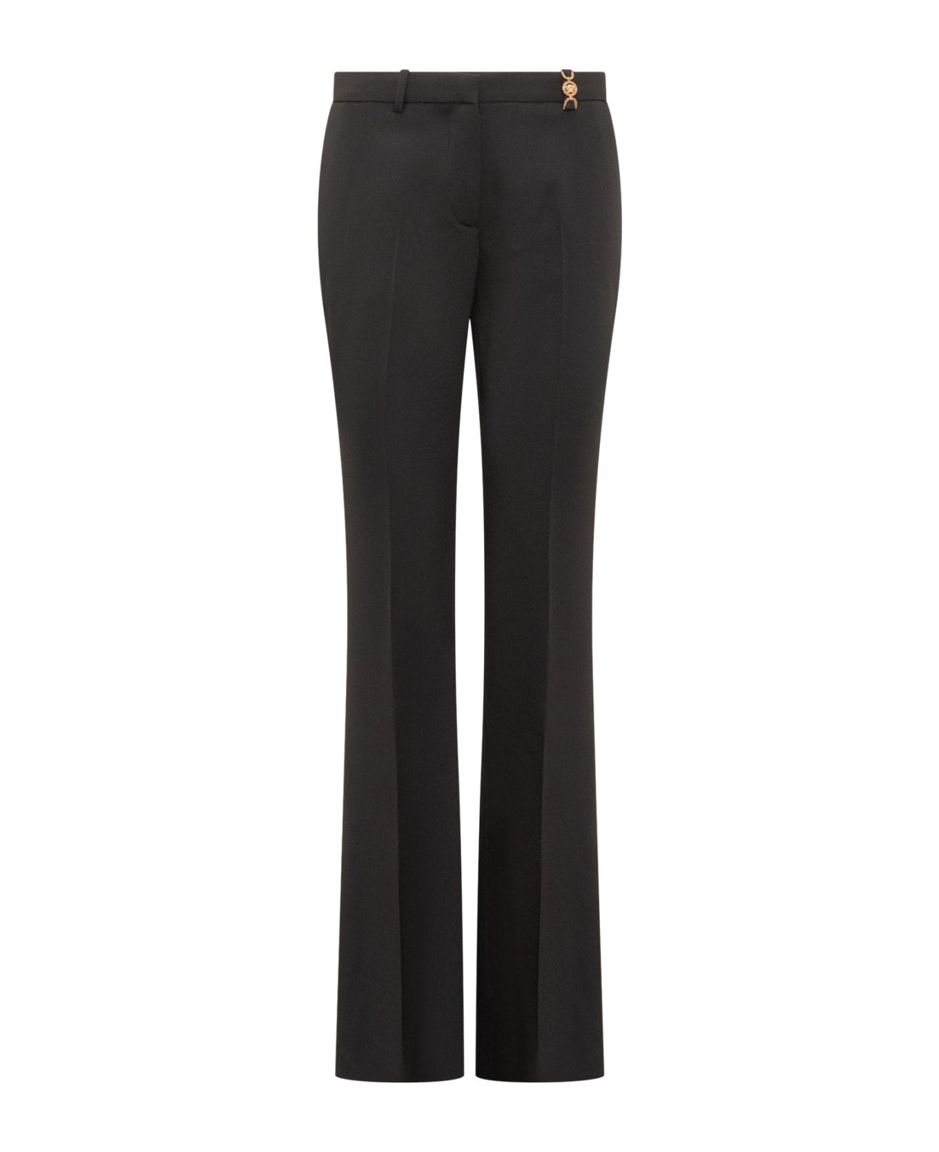 Flared trousers. Hook and zip closure. Belt loops. Four pockets. Medusa detail at the waist. Composition: Outside:, 98% Wool, 2% Elastanelining:, 100% Cupro