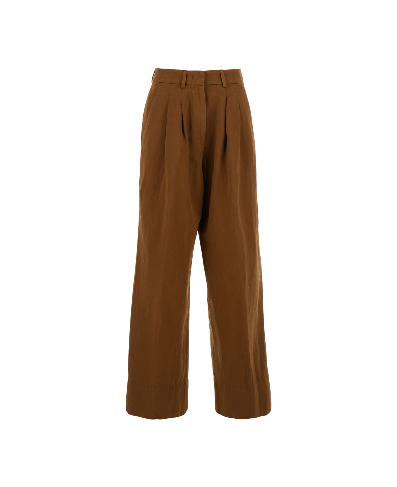 Pants Brown Belt loops Front concealed closure Two side pockets Two rear welt pockets Straight hem Cotton and linen blend Relaxed fit