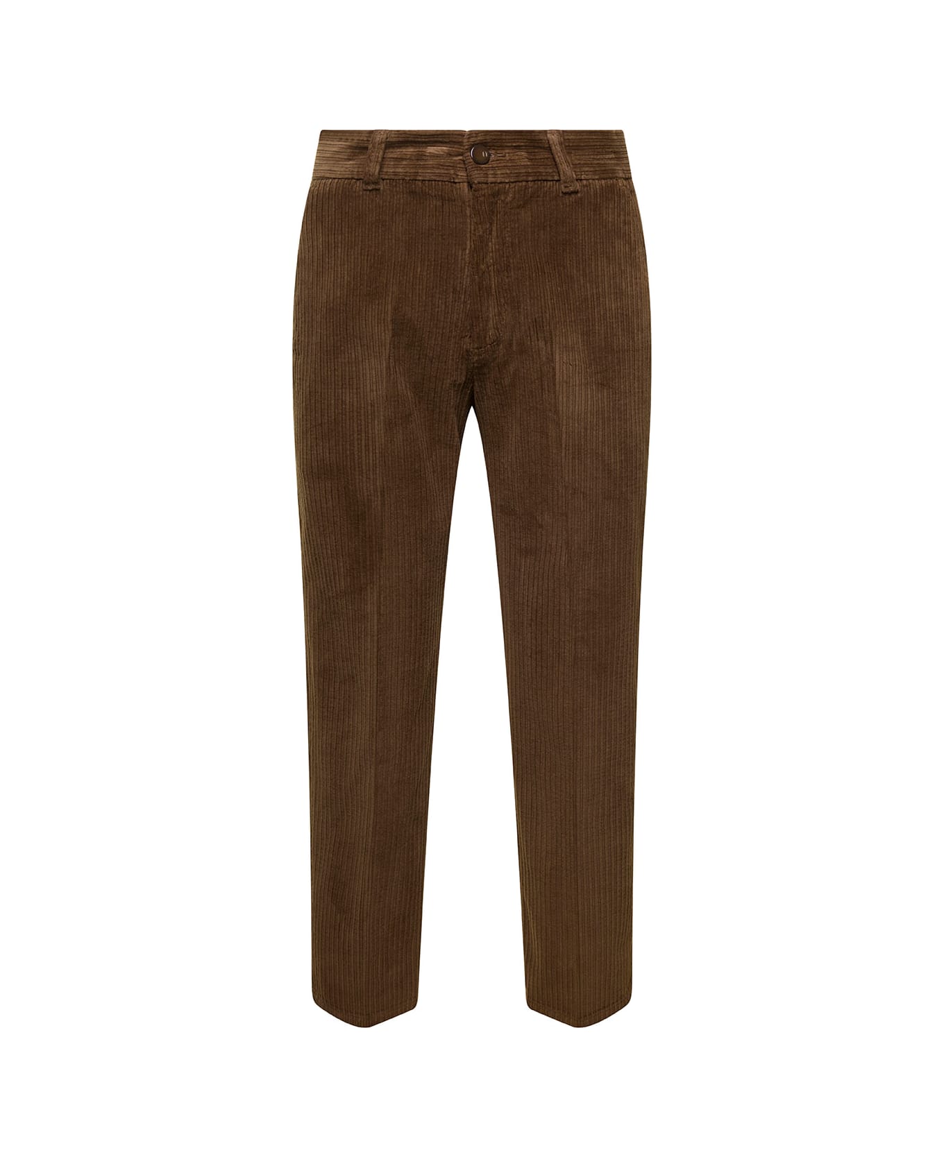 Pants Cropped design Regular waist Belt loops Front button and zip fastening Two rear welt pockets with buttons Logo patch at the back Brown Corduroy Regular fit