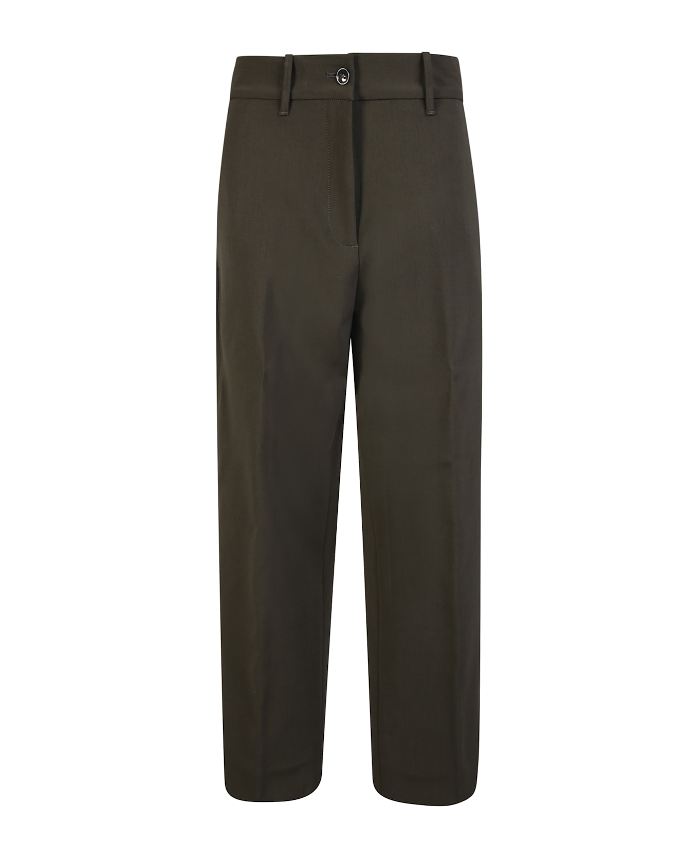 A minimalist and contemporary design characterizes these Nine in the Morning trousers, featuring a sleek silhouette embodying everyday elegance. Technical wool ensures comfort and durability, perfect for a professional wardrobe with a stylish edge.