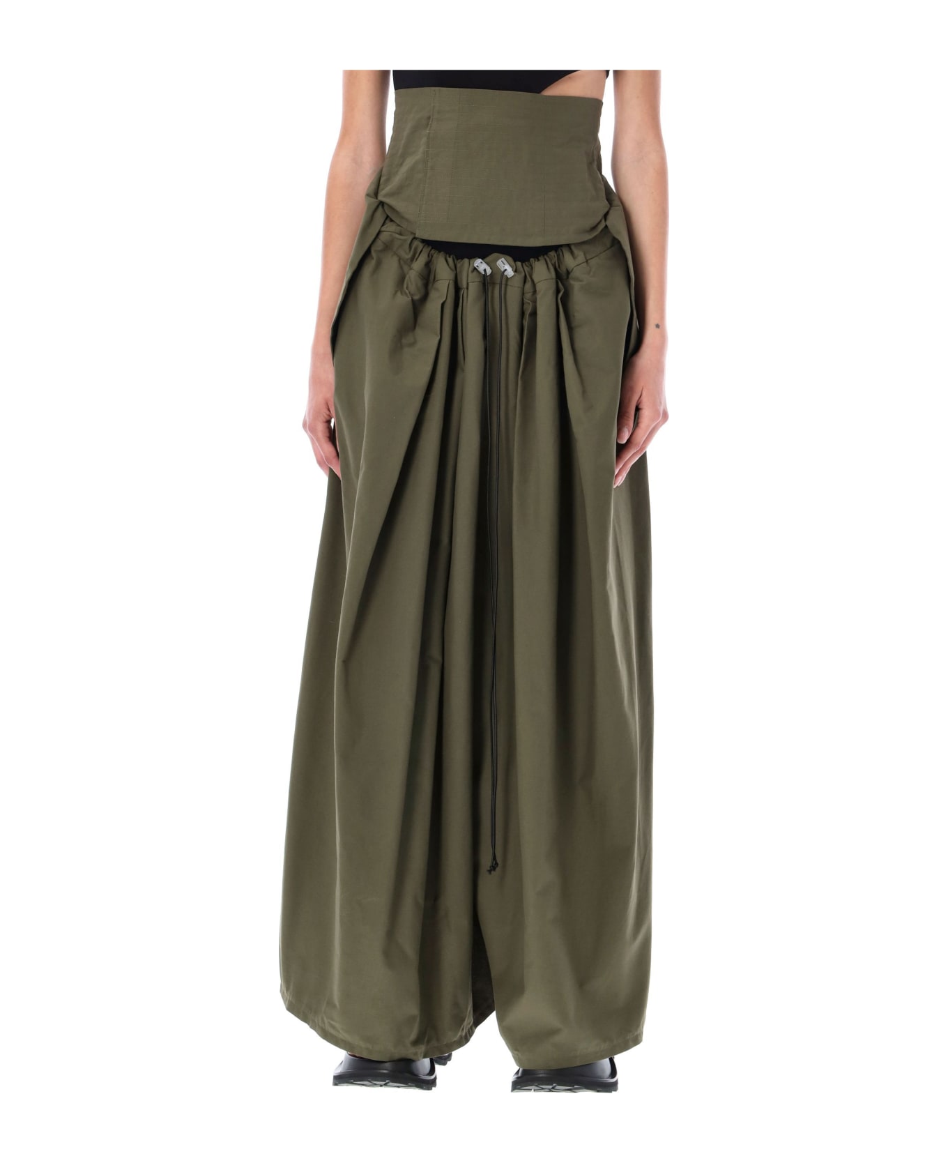 Khaki Medium Cotton Hakama Pants With Velcro Waist Closure By A. w. a. k. e. Mode. Featuring: - Wide Waistband With Velcro Closure - Adjustable Drawstring At Waist - Oversized Legs - Panel Detail At Back