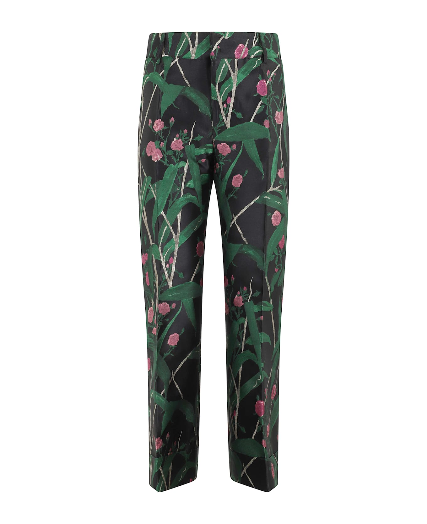 Hendrix pants - The Double J - Black color - Bamboo jacquard print fabric - Waistband with belt loops - Cropped leg - Front hook and button closure