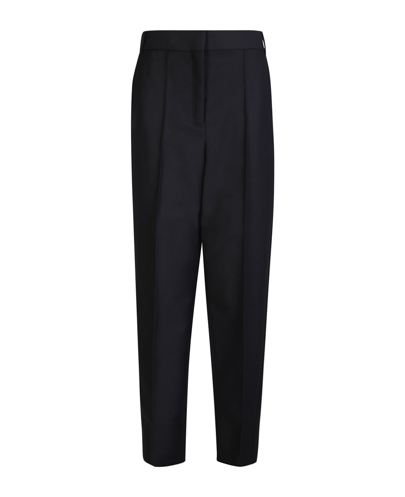 High waist. Belt loops. Hook and zip fly fastening. Tapered leg. Tailored design. Two side inset pockets. Rear welt pocket. Color: Black