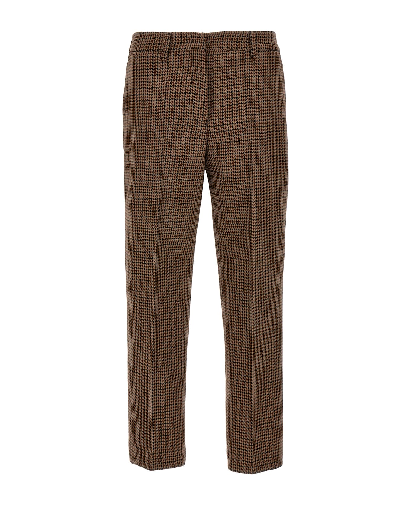 Houndstooth wool pants, hook and button zip closure, pockets, central crease. Composition: 100% virgin wool
