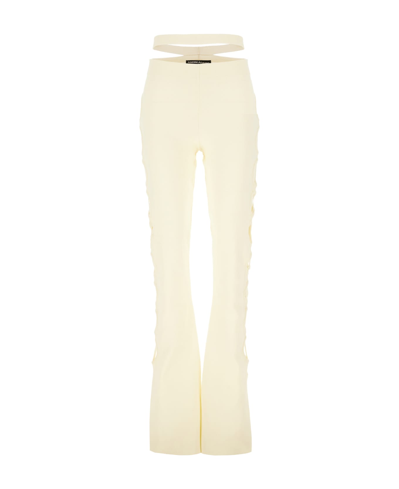Pants realized in stretch viscose blend enriched by cut-out detail on the side. -Elastic band at the waist -Laces to tie on the hemline -Lateral slits on the hemline