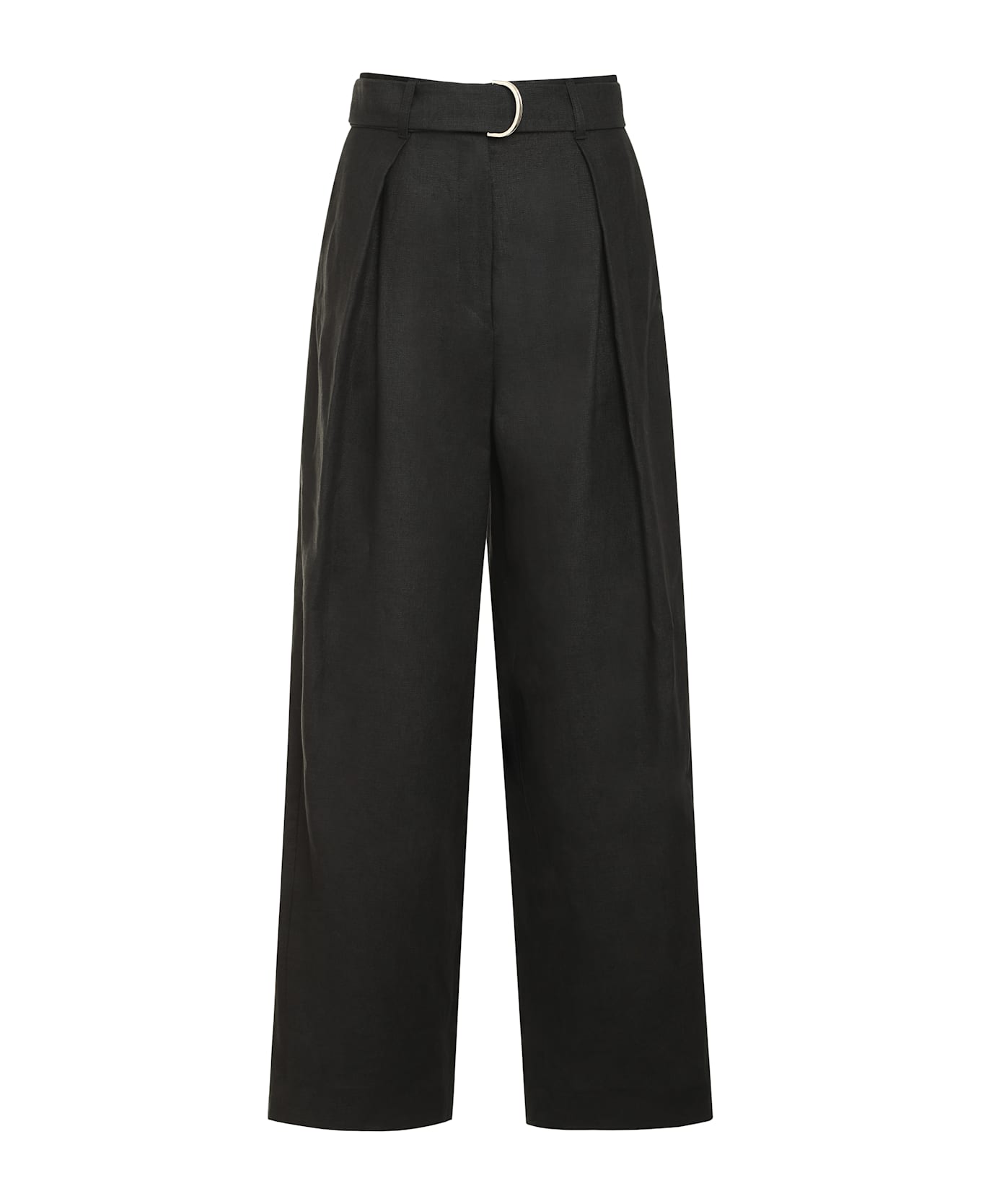 Wide front pleats coordinated belt with buckle fastening two back buttoned welt pockets 100% linen Composition: 100% % Linen
