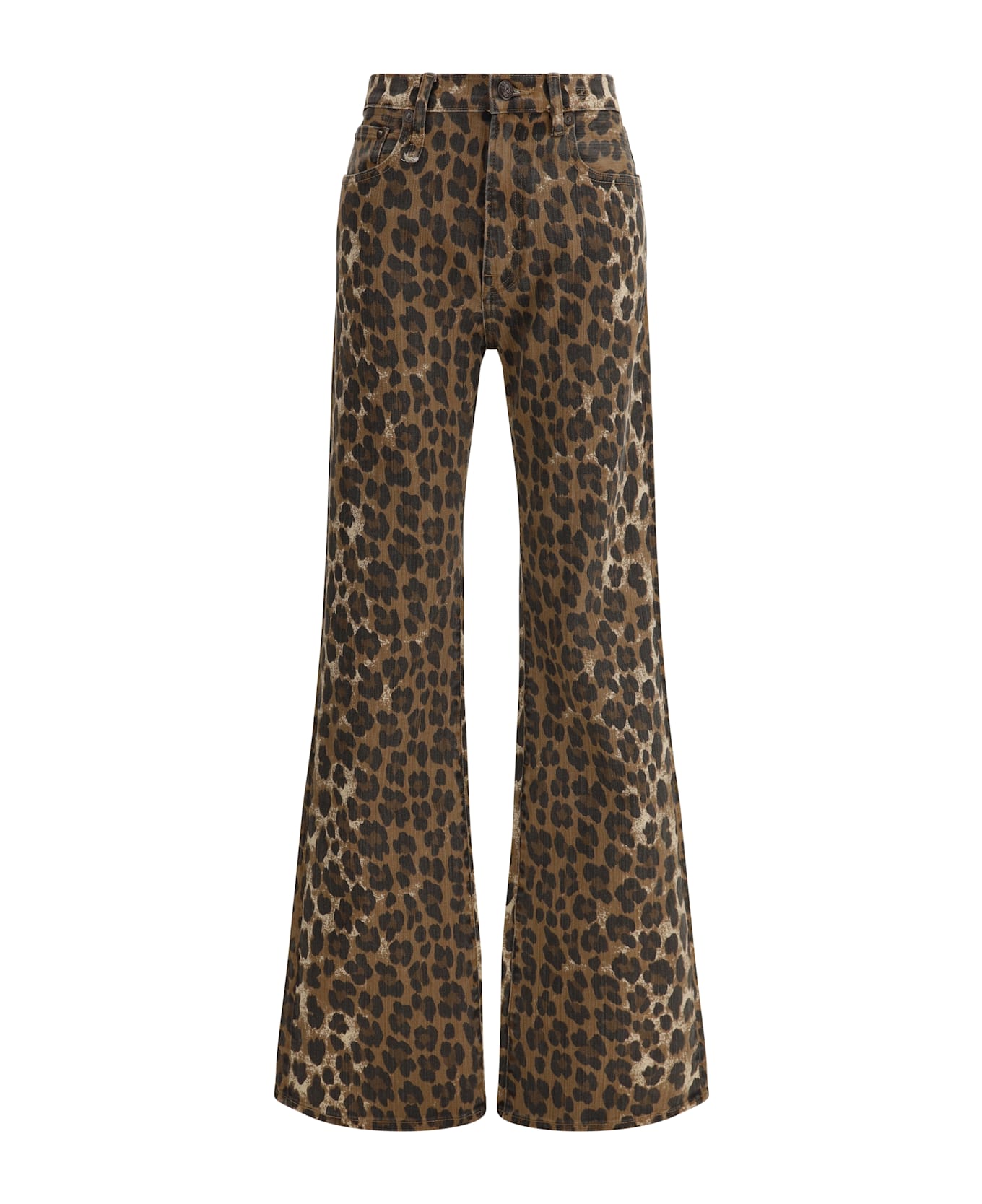 Jane pants by r13, five-pocket flare style, waistband loops, front zipper and button closure, all-over animal pattern, regular fit. Composition: 93% % Cotton, 6% % Viscose, 1% % Elastane
