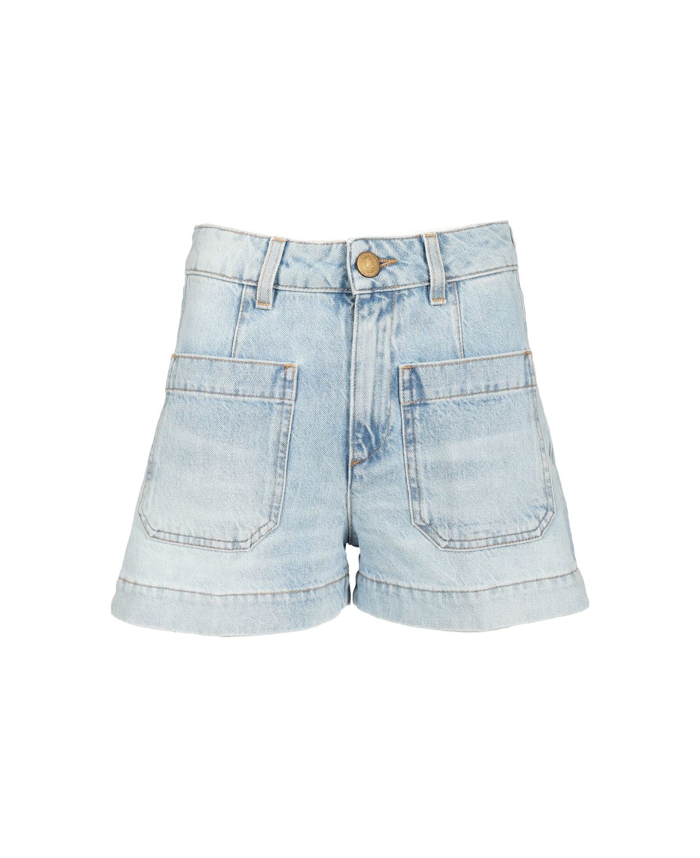 "Janet" shorts in white denim from Seafarer, with high waist, front and back pockets, belt with loops at the waist.