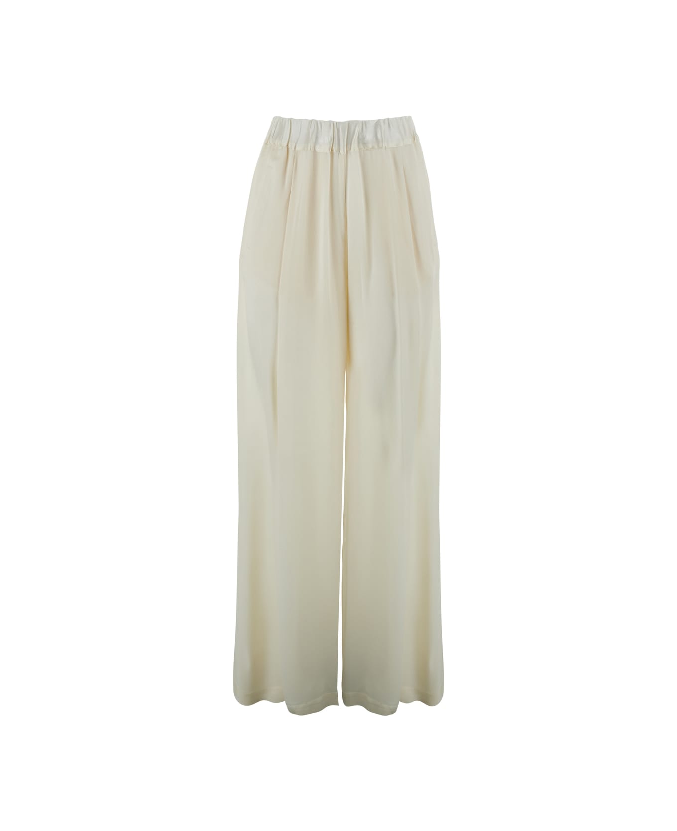 Pants White Elasticized waist Two side welt pockets Pleated details Silk blend Loose fit