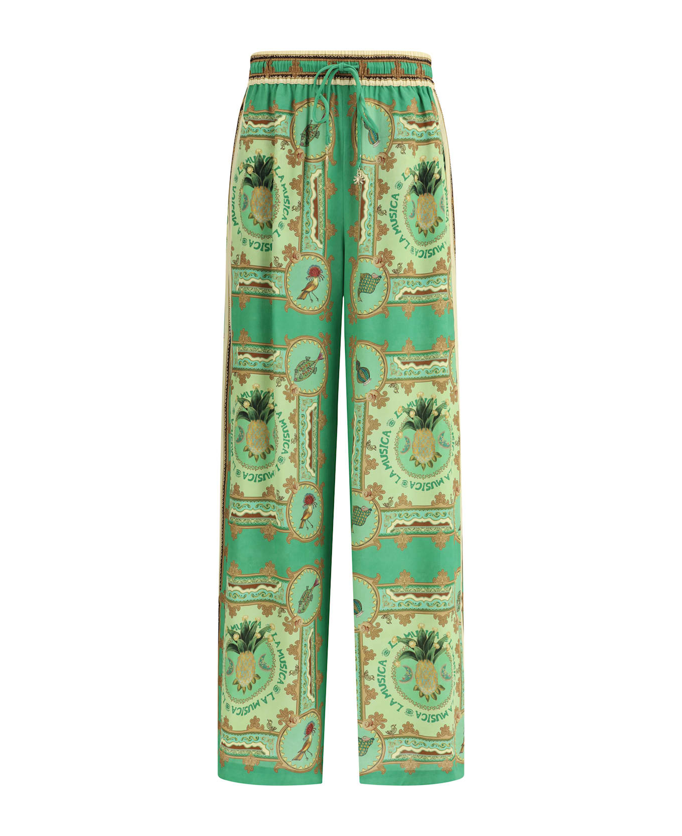 Silk la musica pants by alémais, wide-leg pattern, adjustable elastic waistband with drawstring, two side welt pockets, multicolored pattern, regular fit.