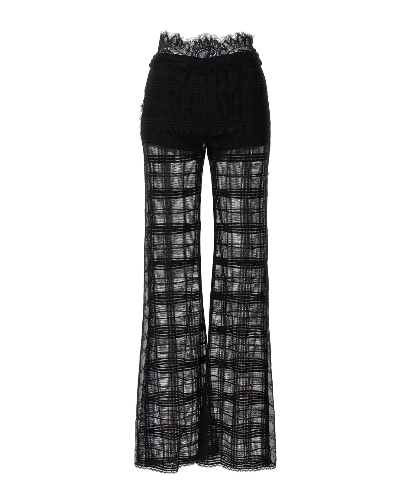Lace trousers, high waist, slightly flared leg, zip fly.