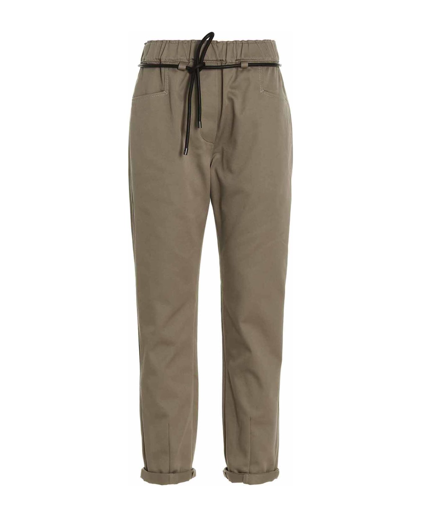 Cotton pants with a leather belt at the waist, an elastic waistband and pockets. Composition: 100% cotton