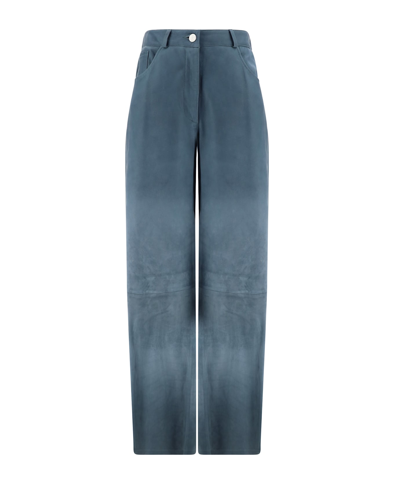 Lambskin catania pants by arma, wide-leg five-pocket design, paneled design, front button and zipper closure, belt loops waistband.