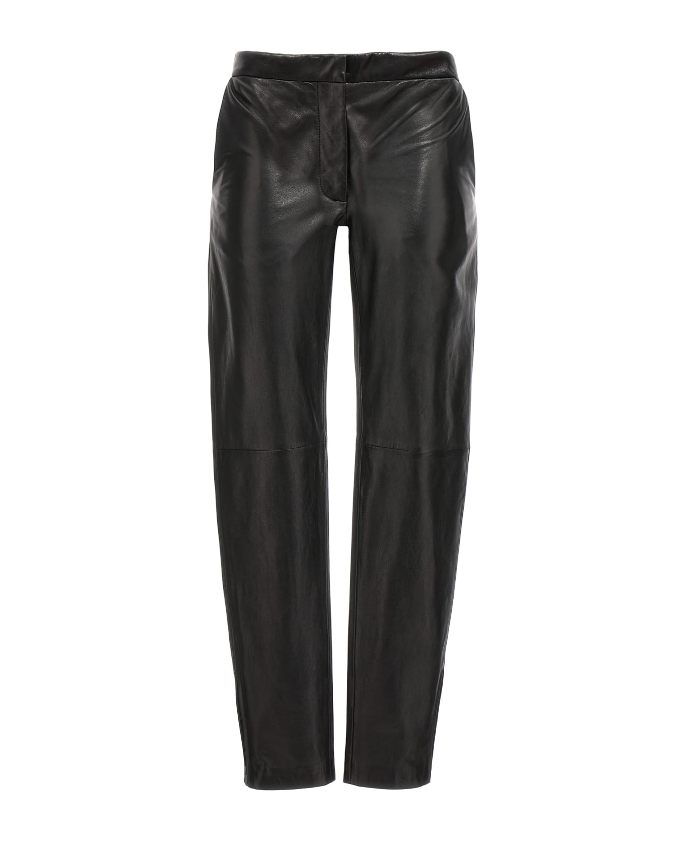 Leather pants, slim fit with zip detail at the ankles, unlined inner zip and button closure.