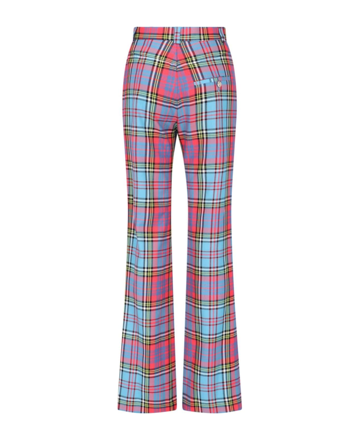 vivienne westwood 'lelio' bootcut pants, multicolor wool, all-over 'macandy' tartan pattern, belt loops, button and zipper closure, one back welt pocket, straight leg.
