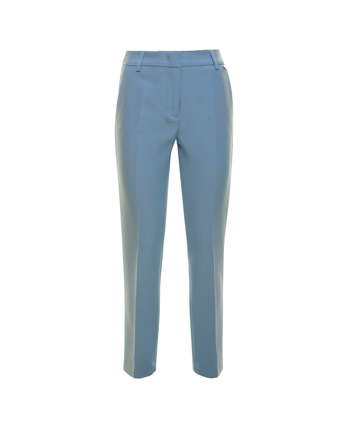 Light Blue Cigarette Pants With Logo Charm In Stretch Fabric Woman