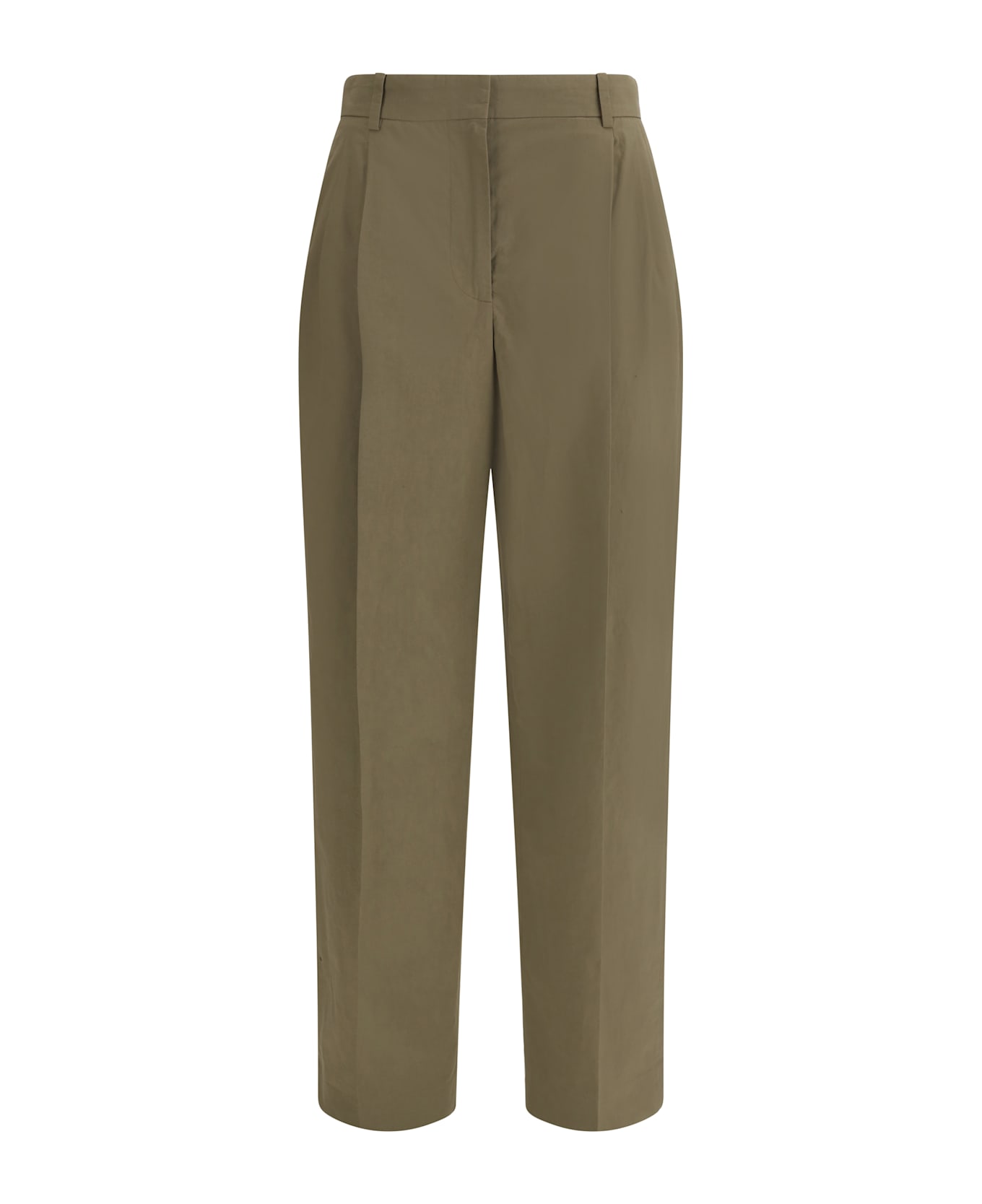The row's lilas pants are a perfect example of sartorial elegance, made from heavy cotton poplin that gives a solid structure and a refined look. the high-waisted style slims the figure, while the straight leg creates a clean, modern silhouette. double front pleats add a touch of classicism and tailored detail, making these pants especially sophisticated. side welt pockets complete the design with a functional yet discreet element, keeping the garment minimalist and elegant. ideal for a formal or semi-formal look, these pants are perfect to pair with more sophisticated blouses, shirts or tops for an outfit that is always impeccable and classy.