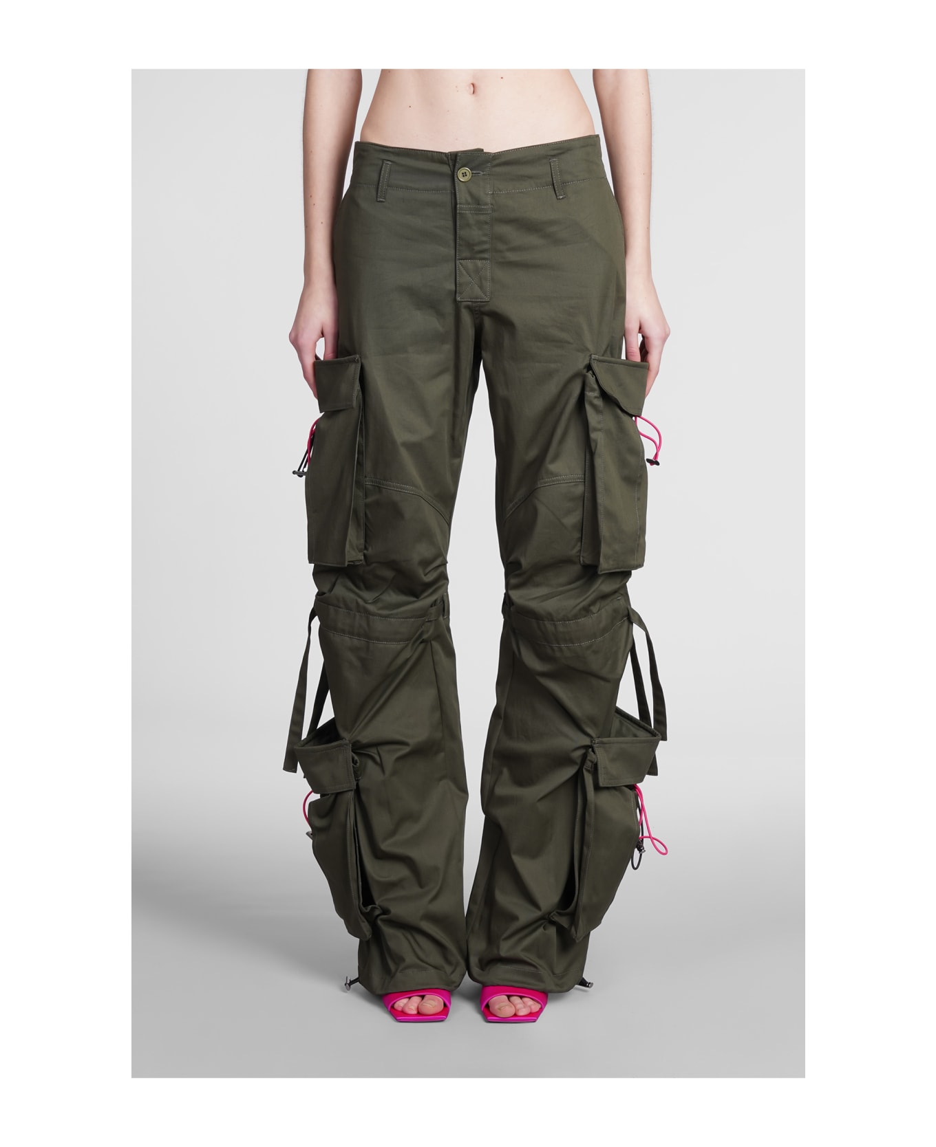 Lilly Pants in green cotton, button and zip closure, cargo pockets, waist belt loops, 100% cotton, Made in Italy, model is 180 cm and wears size 27