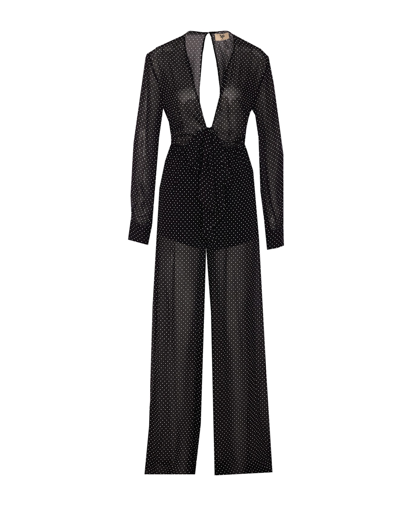 Aniye By black Lily dress, all over dots print, V-neck, long sleeves, button on cuffs, midi model Composition: 100% Viscose