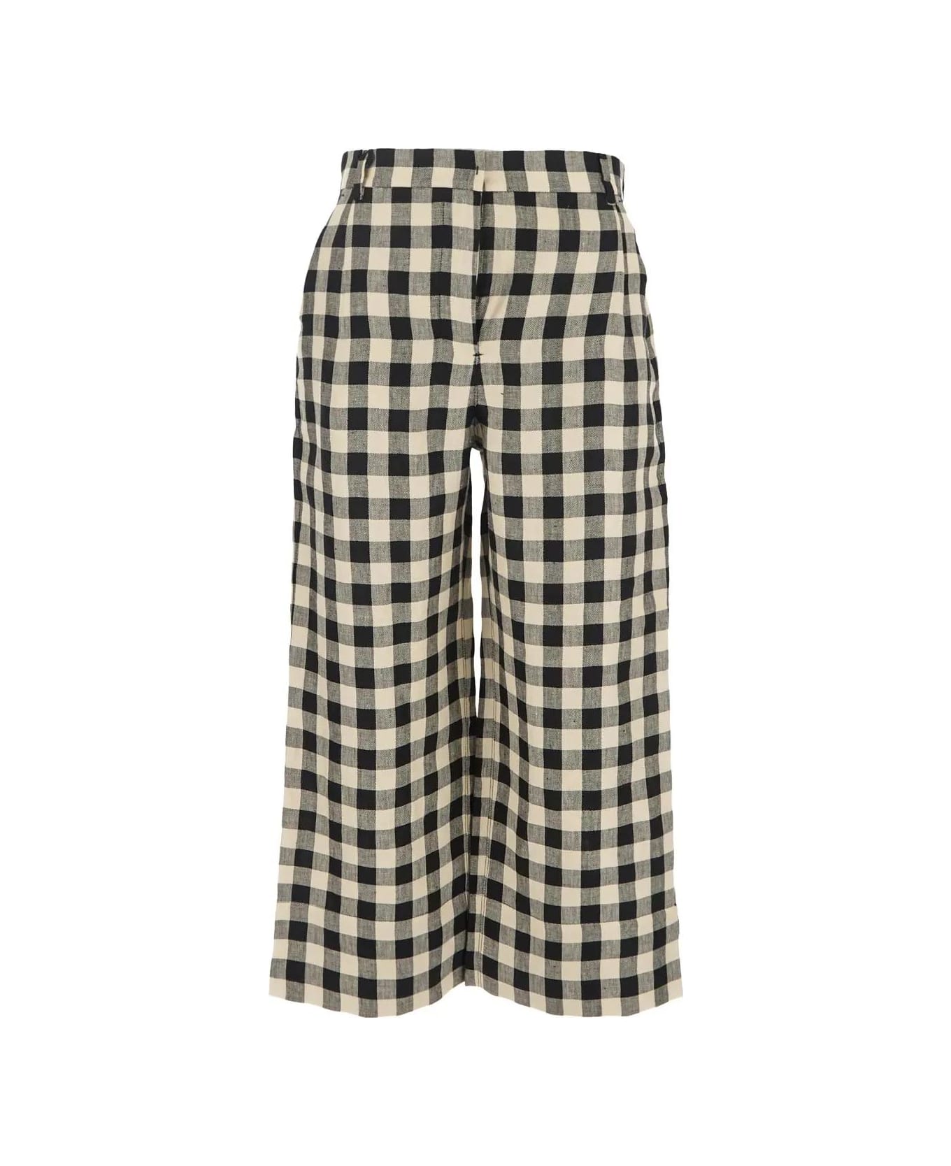 S' Max Mara basketweave trousers in black/white yarn-dyed linen with checked pattern, cropped length, wide-leg, belt loops, zip fly and hook closure, side slits at the bottom and slanted pockets.