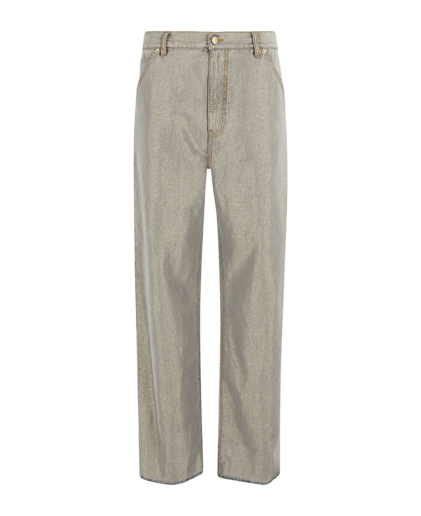 Lisa Lurex Jeans - Darkpark - Light gray color - Lurex denim fabric - Regular waist with belt loops - Wide leg - Five-pocket style - Removable gold metal chain side applique - Wide fit