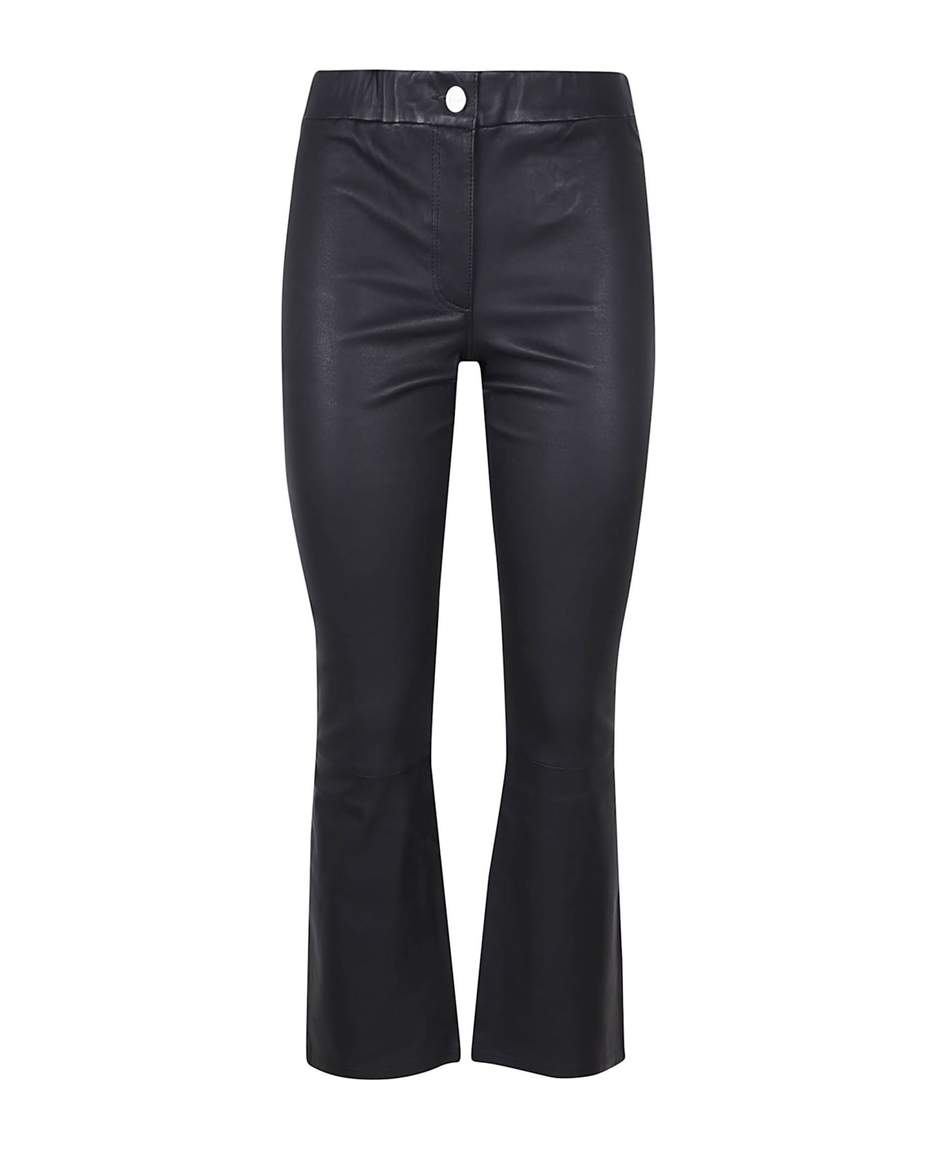 LIVELY Stretch Plonge leather trousers BY ARMA. Zip and button closure; elastic waist. Fit design that follows the shape of the body with trumpet bottom.