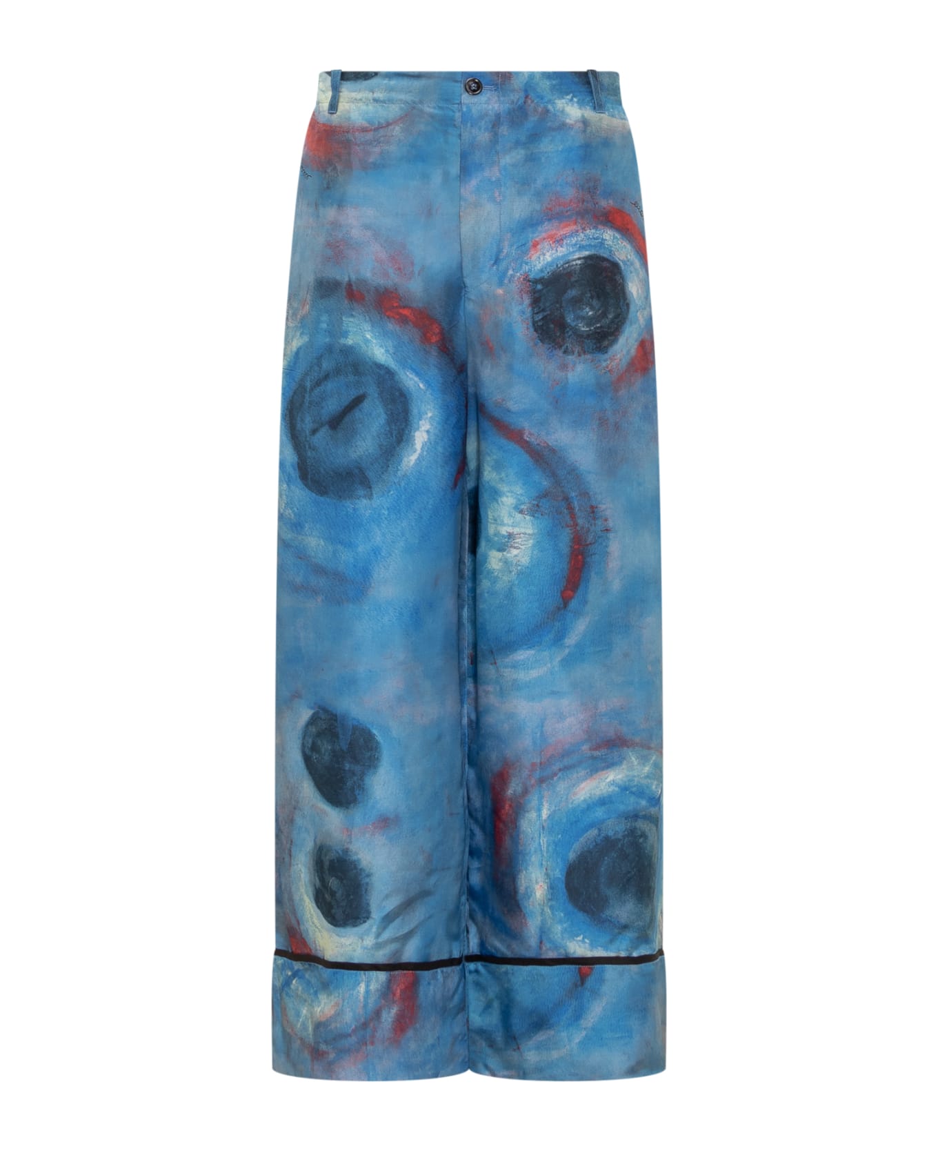 Long Pants. Button closure. Elastic waistband. Internal drawstring. Belt loops. Two side pockets and one on the back. All over printed pattern. Composition: 100% Silk