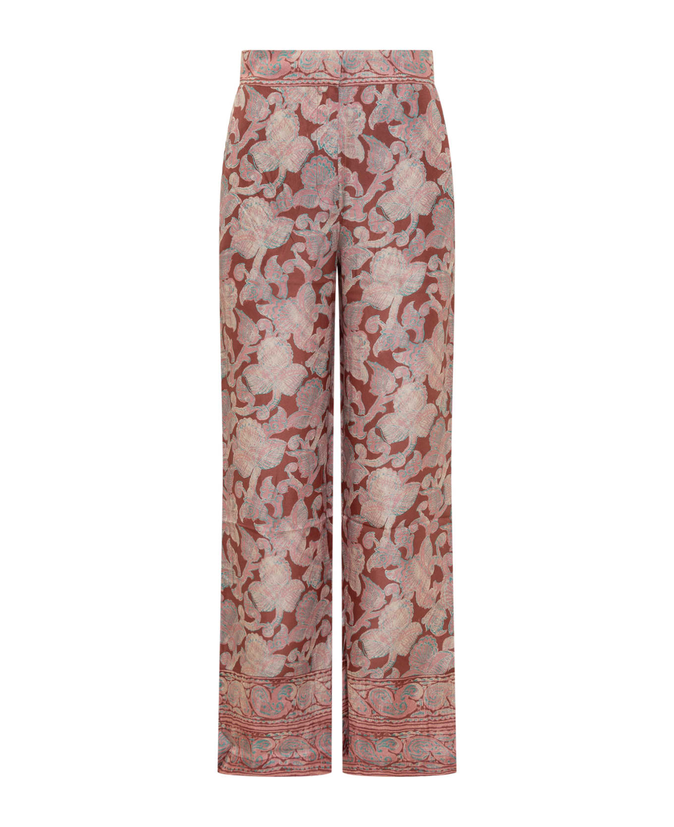 Long pants. Zip and hook closure. Two side pockets and two on the back. All over floral pattern.