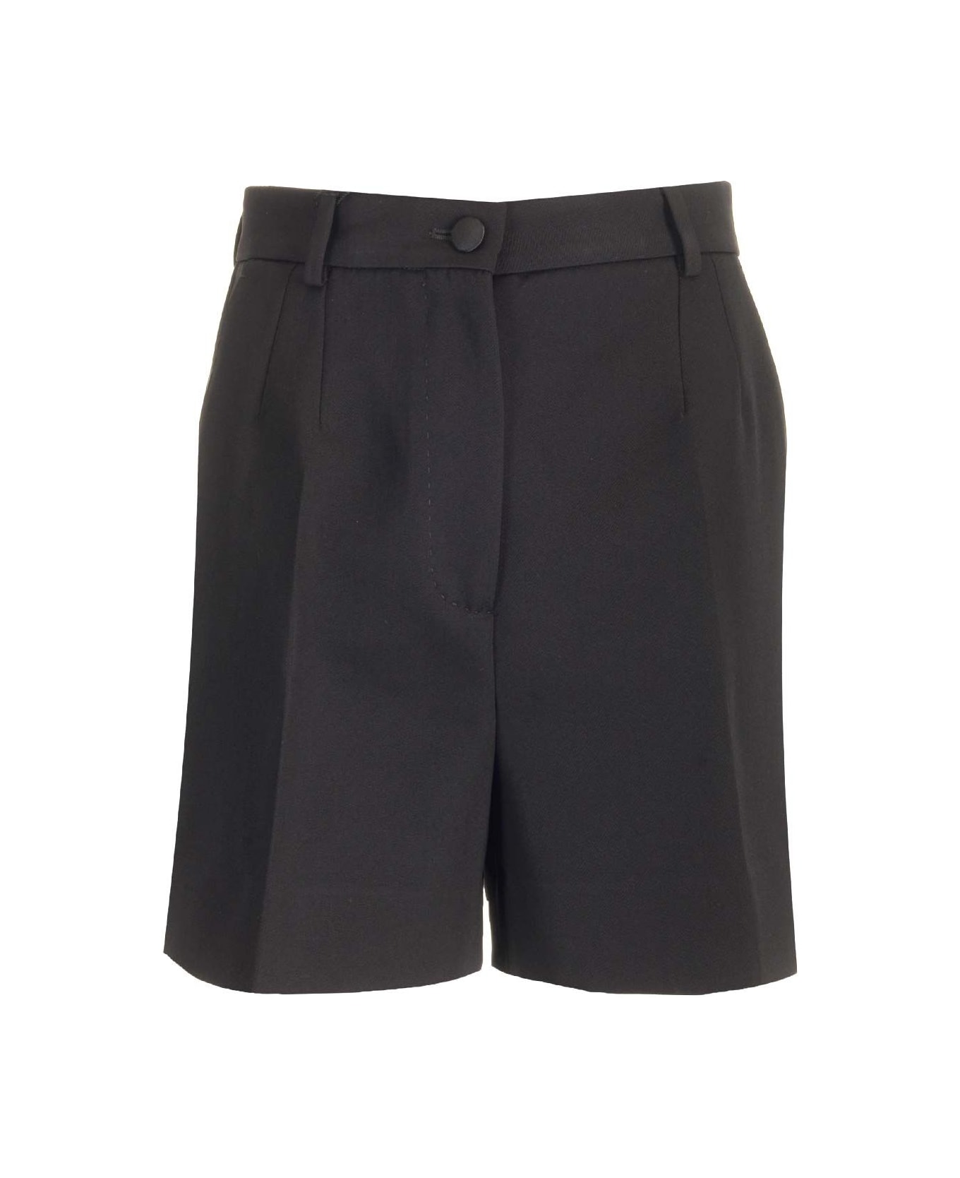 Wool gabardine tuxedo shorts from Dolce & Gabbana, with high waist, strap with belt loops, front closure, side pockets. Composition: 02%PL+08%SE+90%WV