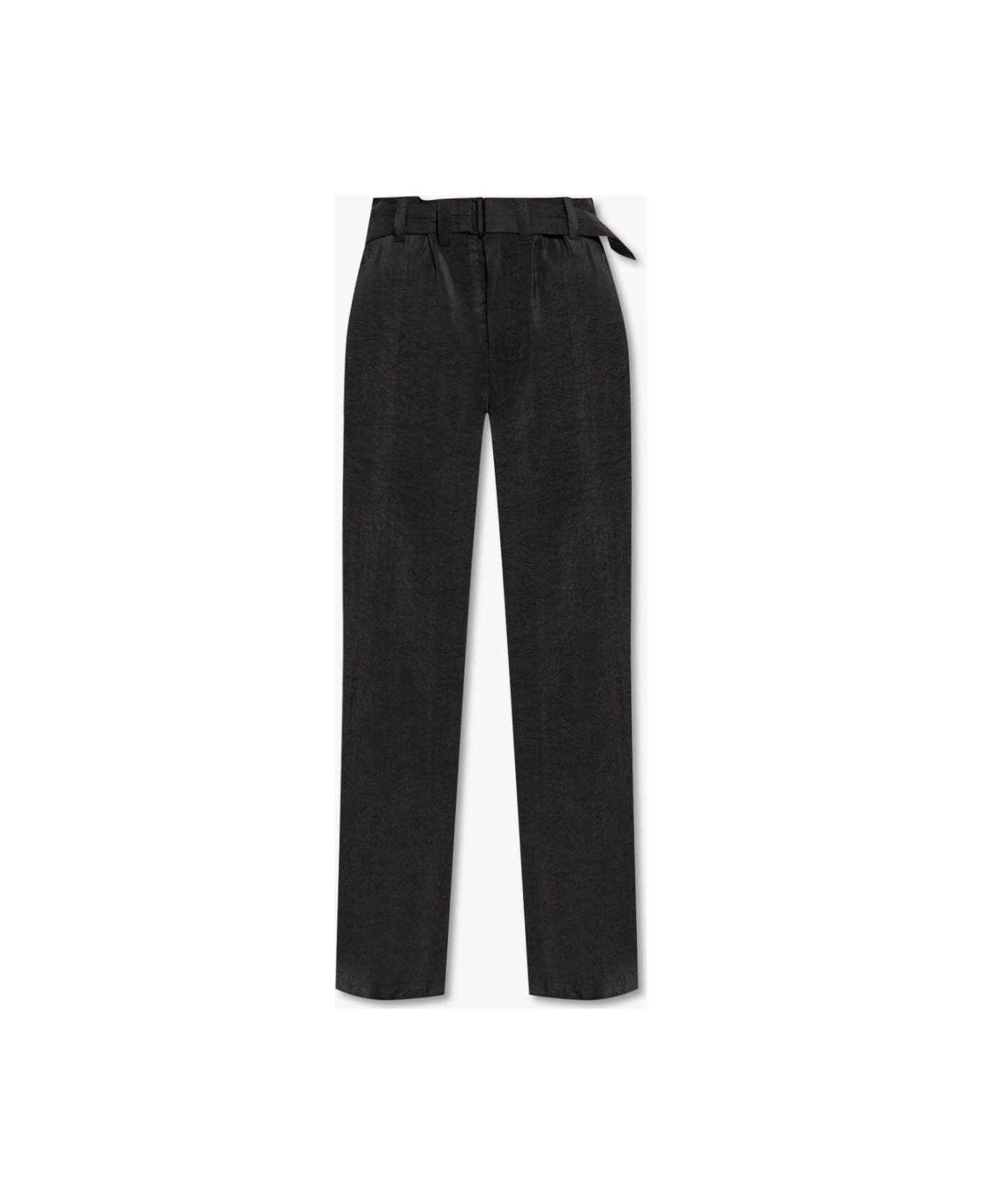 Black loose-fitting trousers from Lemaire. Crafted from a silk blend, this design features a hook, button and zip, detachable and adjustable strap, two front pockets and two buttoned back pockets.