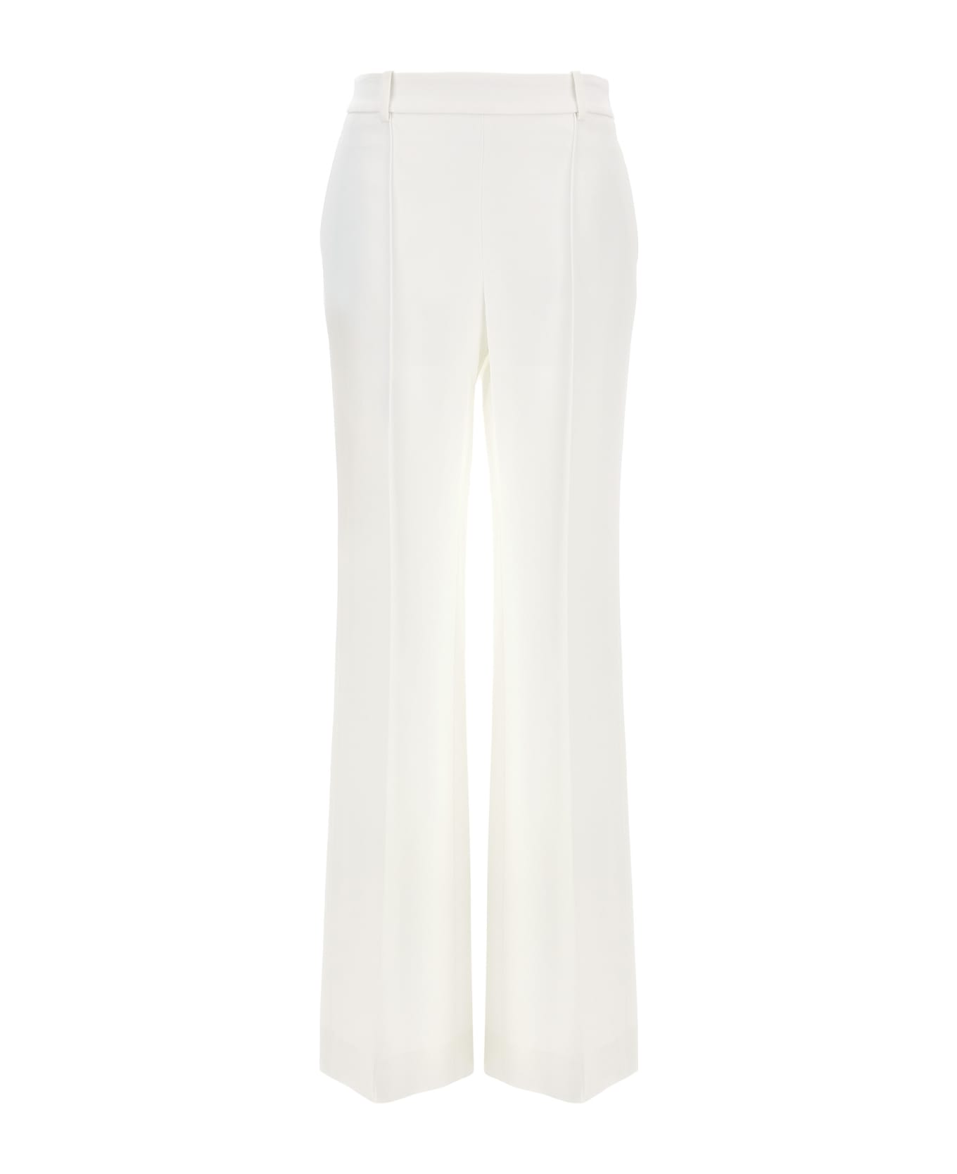 Tailored trousers in viscose blend with wide leg, visible front stitching, pockets, side zip closure.