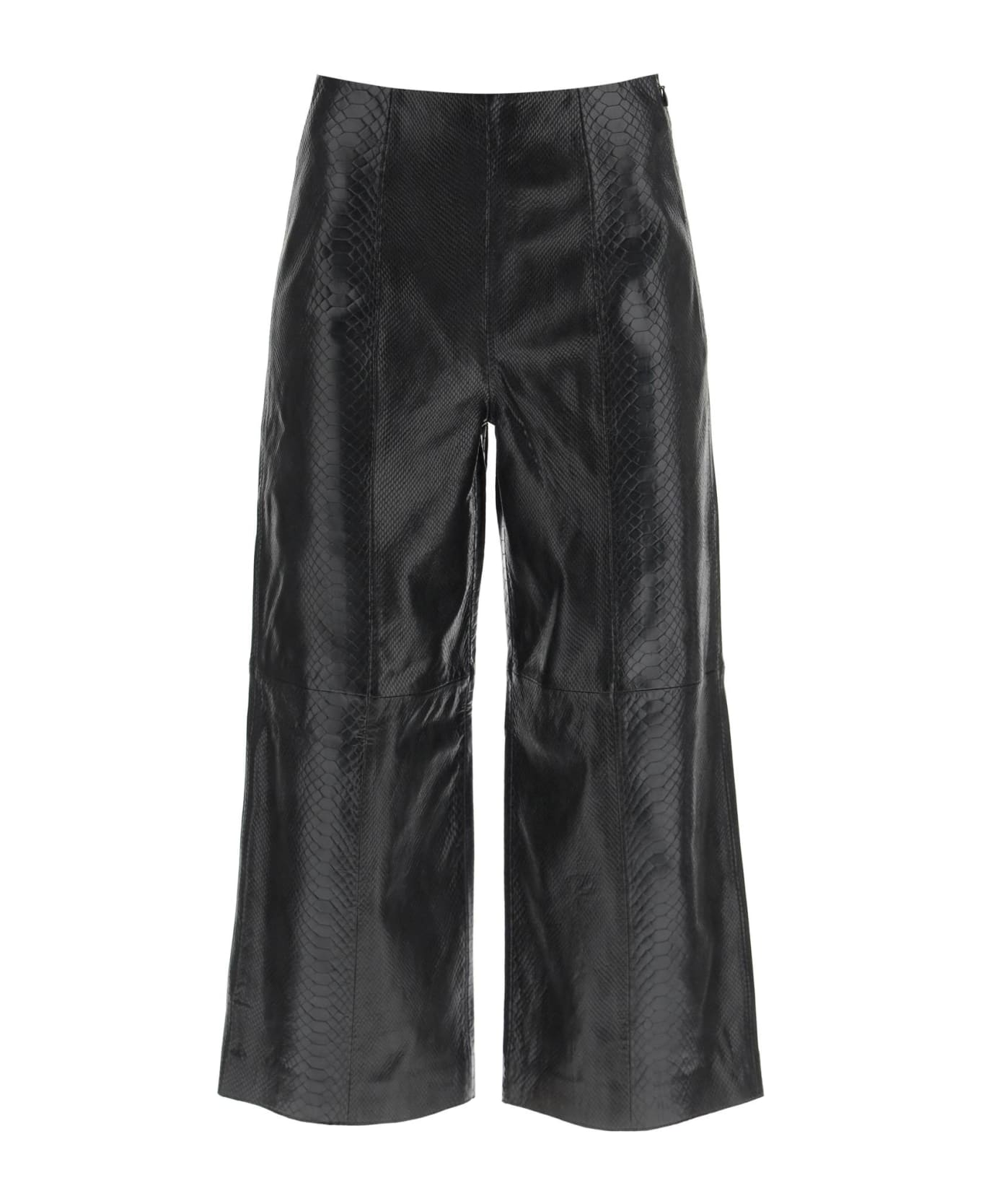 By Malene Birger panelled pants in snake-embossed lambskin with cropped hem. High-waisted cut with straight, wide leg. Side closure with invisible zip. The model is 177 cm tall and wears a size EU 36.