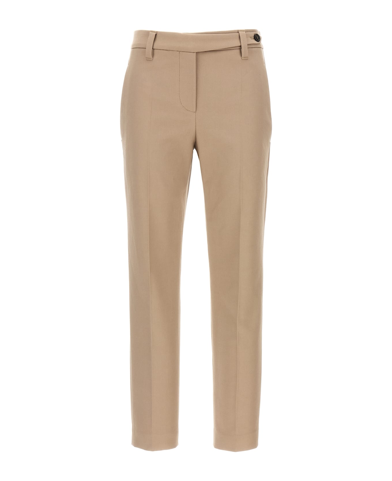 Cotton pants, crop model, stretched pleat, zip hook and button closure on the front, pockets, straight leg, back Monile detail. Composition: 97% cotton, 3% elastane