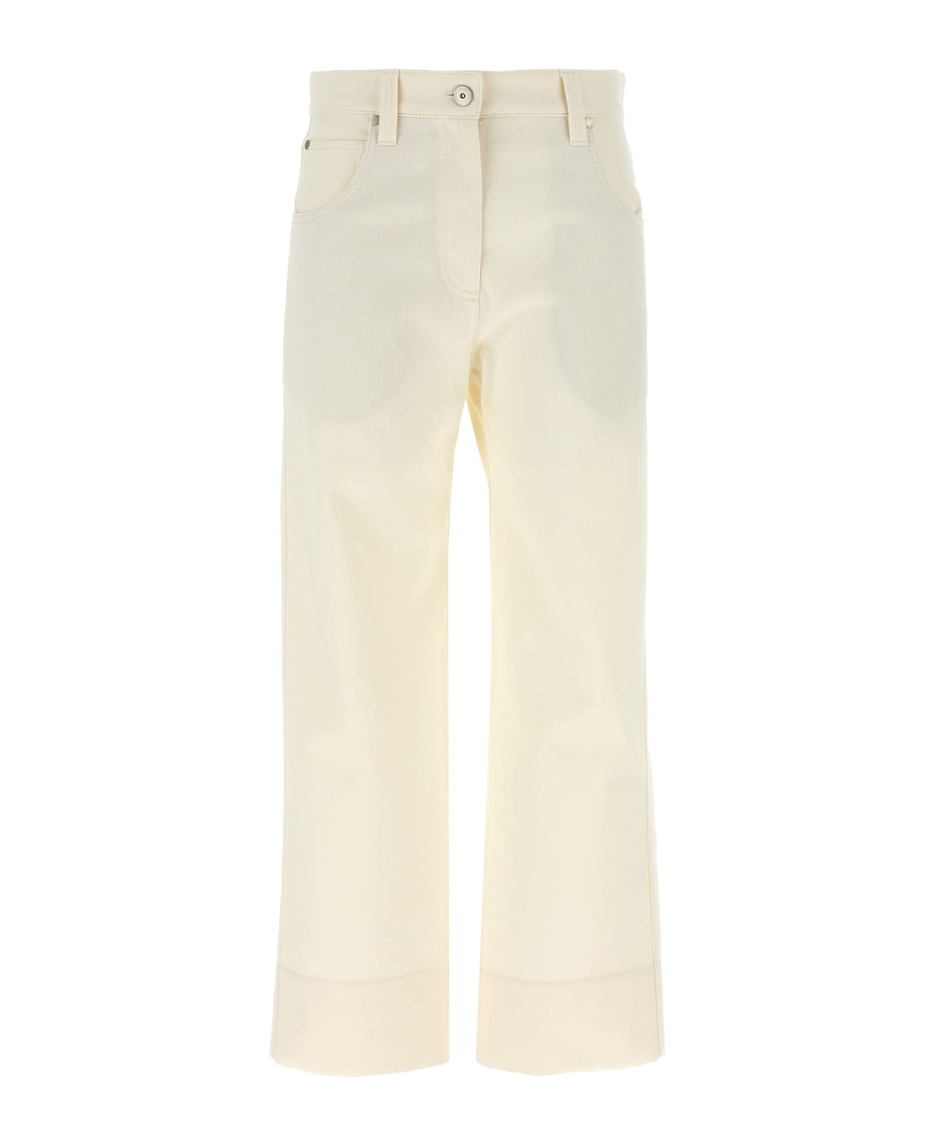 Cotton and wool blend pants, crop model with wide leg, back Monile detail, zip and front button closure, five pockets. Composition: 72% cotton 15% wool 13% polyester