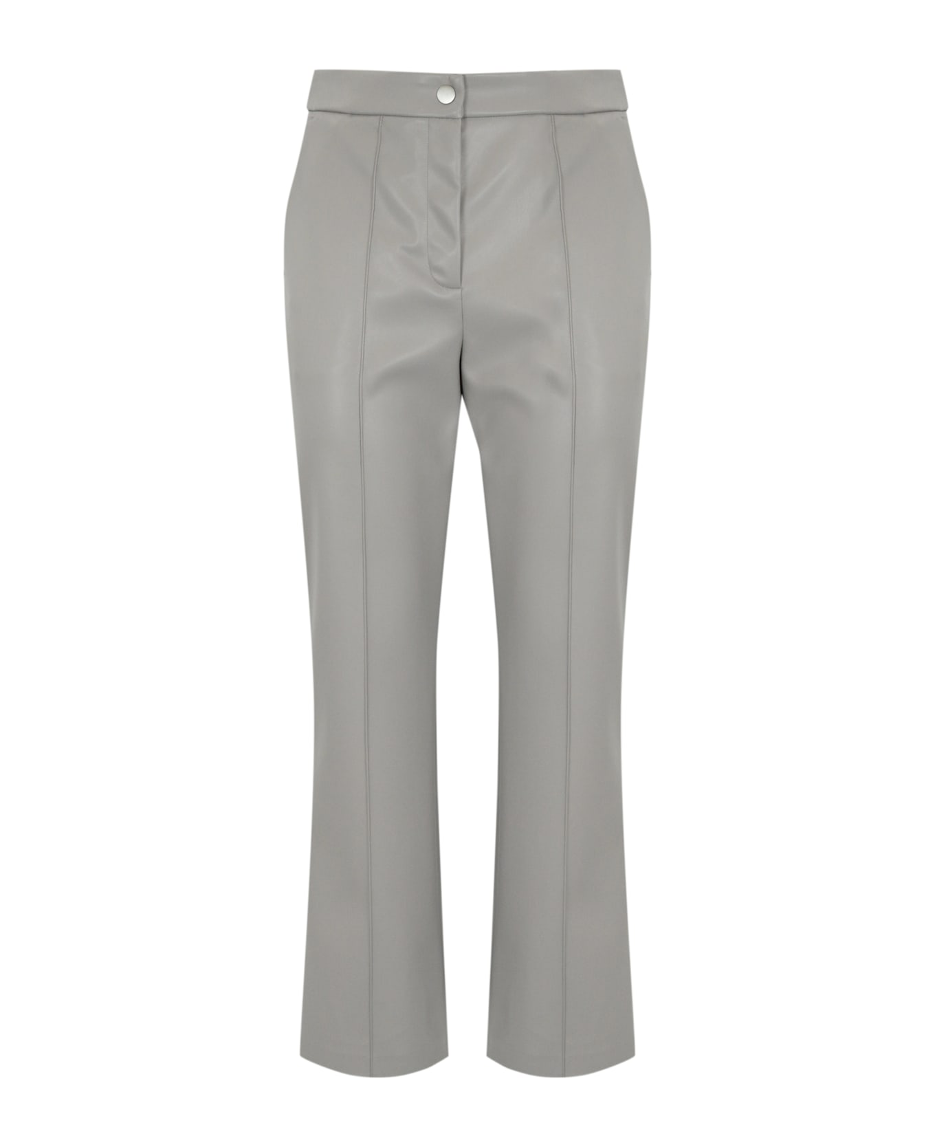 women's leather effect trousers: coated stretch jersey leather effect mid-rise zip and button closure ironed crease with ribbing cropped at the ankle side welt pockets regular fit composition: 100% polyester polyurethane coating