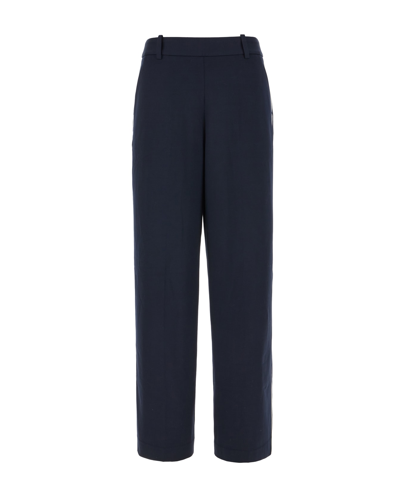 Wide-leg pants realized in stretch cotton characterized by contrasting embroidery on the side. -Belt loops at the waist -Concealed zip closure at the back -Slant pockets -Central ironed pleat