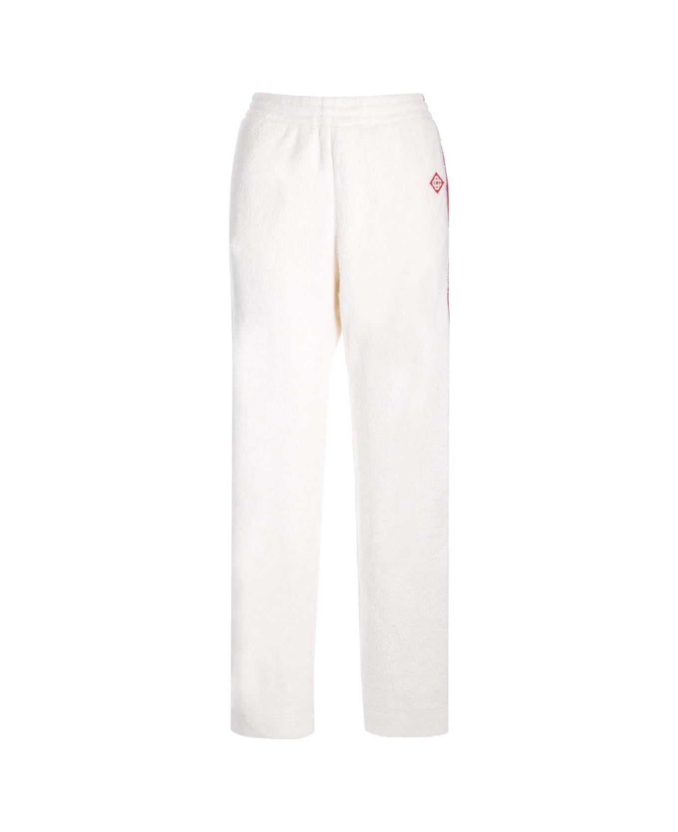 Off-white terry tracksuit trousers with side bands from Casablanca, with elastic waist, side pockets with zip, straight leg. Composition: MAIN: 31%CO 25%PL 23%ACRYLIC 21%POLYAMIIDE, LINING: 100% PL TRIM 1:100% PL TRIM 2: 95%RAYON 5%PL
