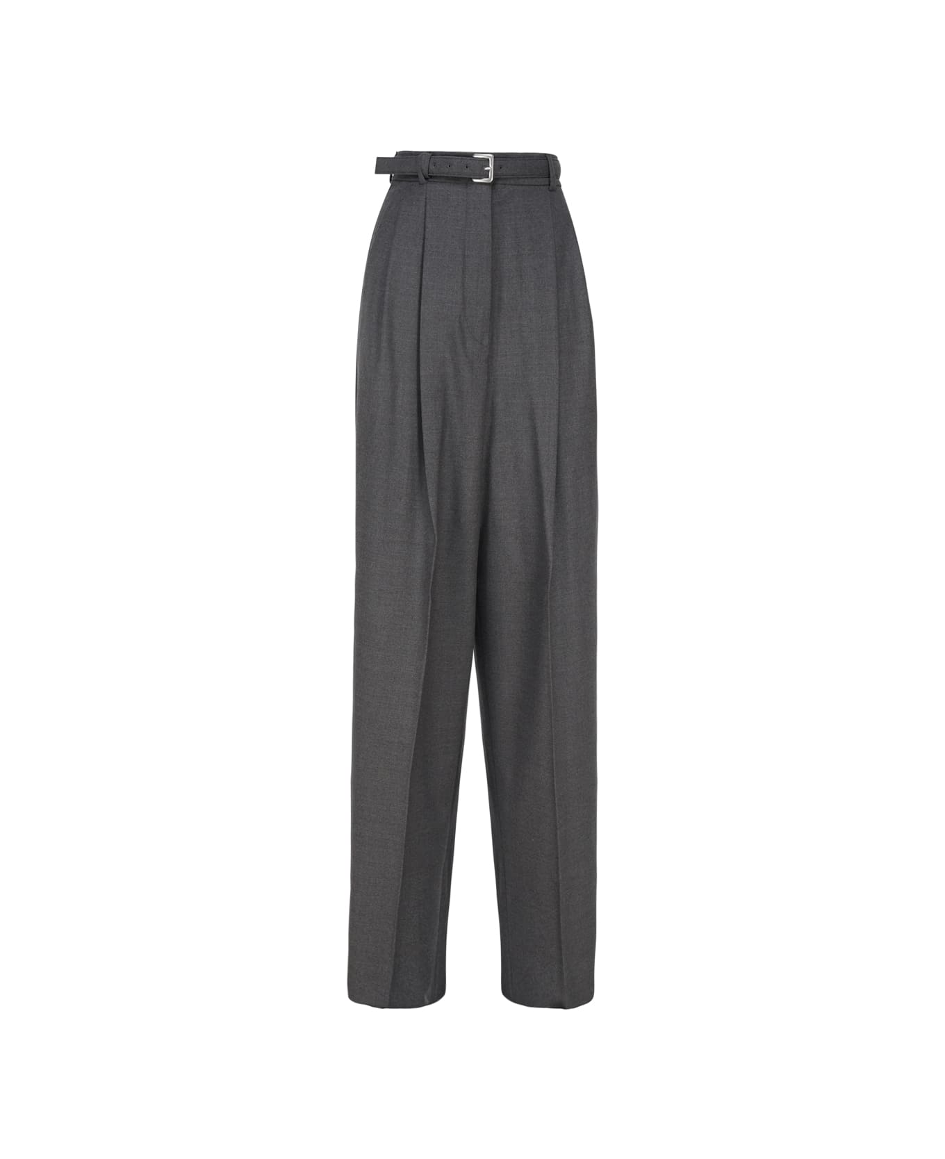 Grey Oversized Stretch Wool Trousers from SportMax -Pants with an oversized line -Made of stretch wool flannel -Waistline is characterized by a personalized internal belt -Double pleats which amplify the volume of the leg -Pockets are slanted along the sides and welt on the back -Made in Italy -Colour: Grey -95% Virgin wool, 5% Elastane