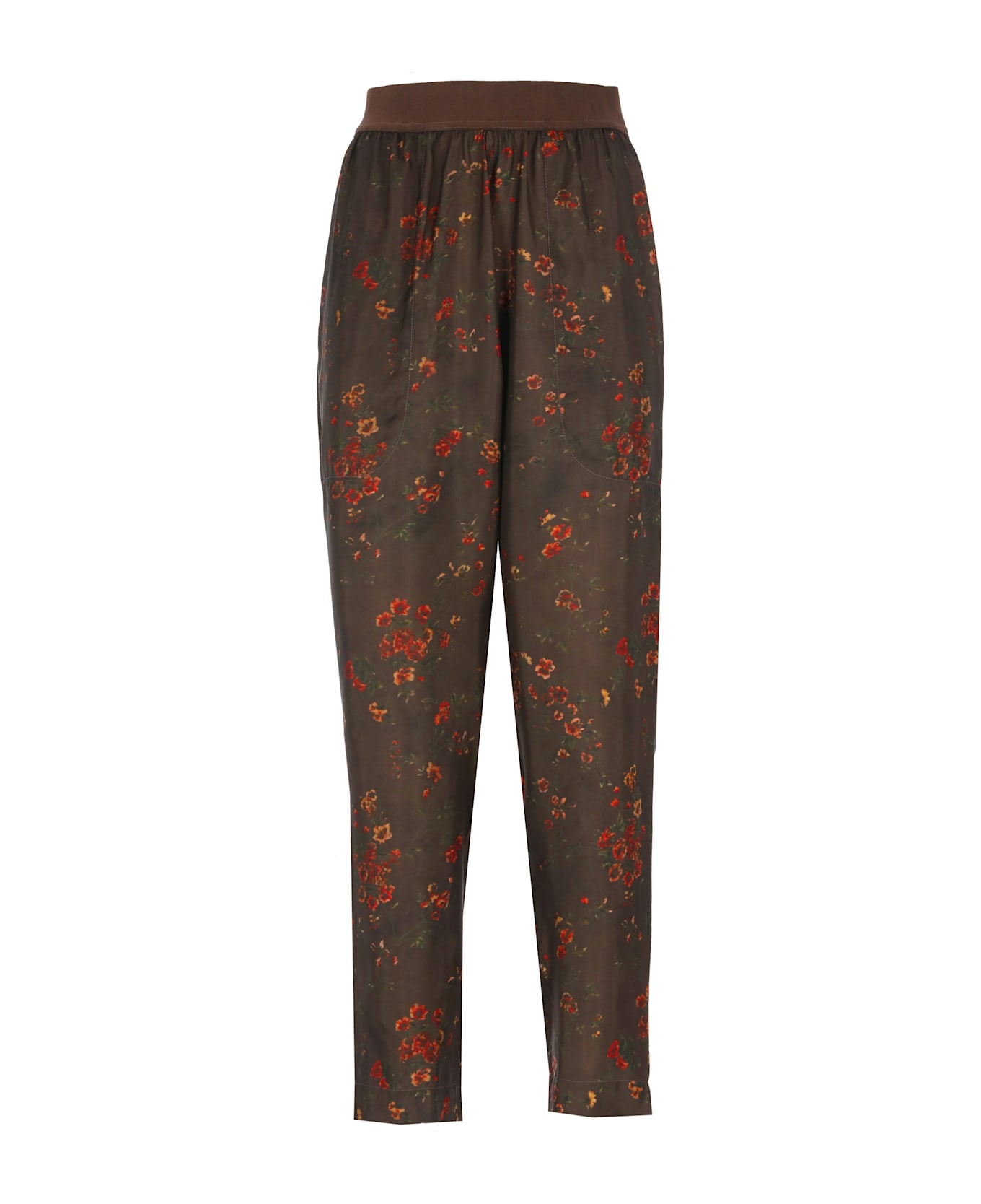 - Brown Uma Wang trousers for woman - Elastic waist - Two side slit pockets - All-over contrasting color floral pattern