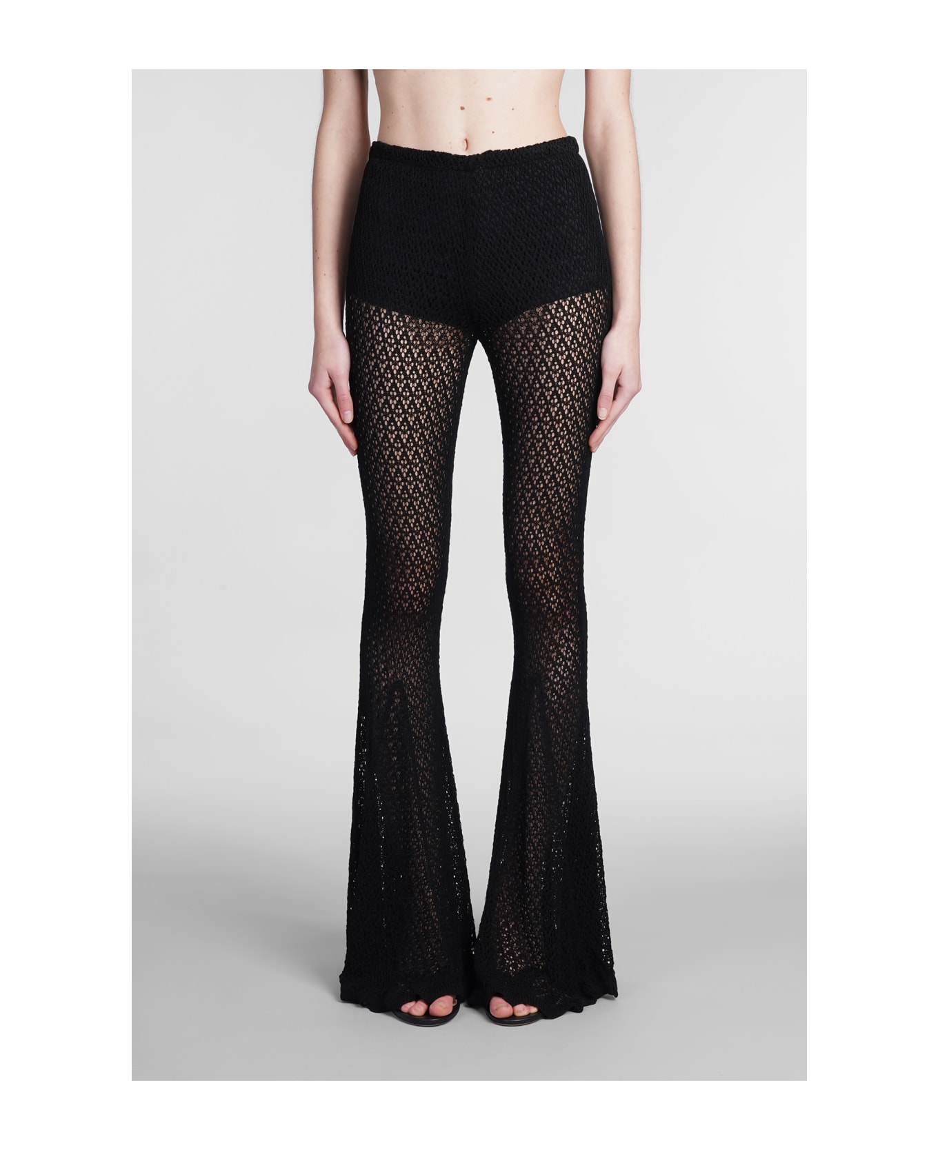 Pants in black viscose, 30% cotton, 70% viscose, flared, Model is 180 cm and wear a size S, crochet style, Made in Italy, low waist