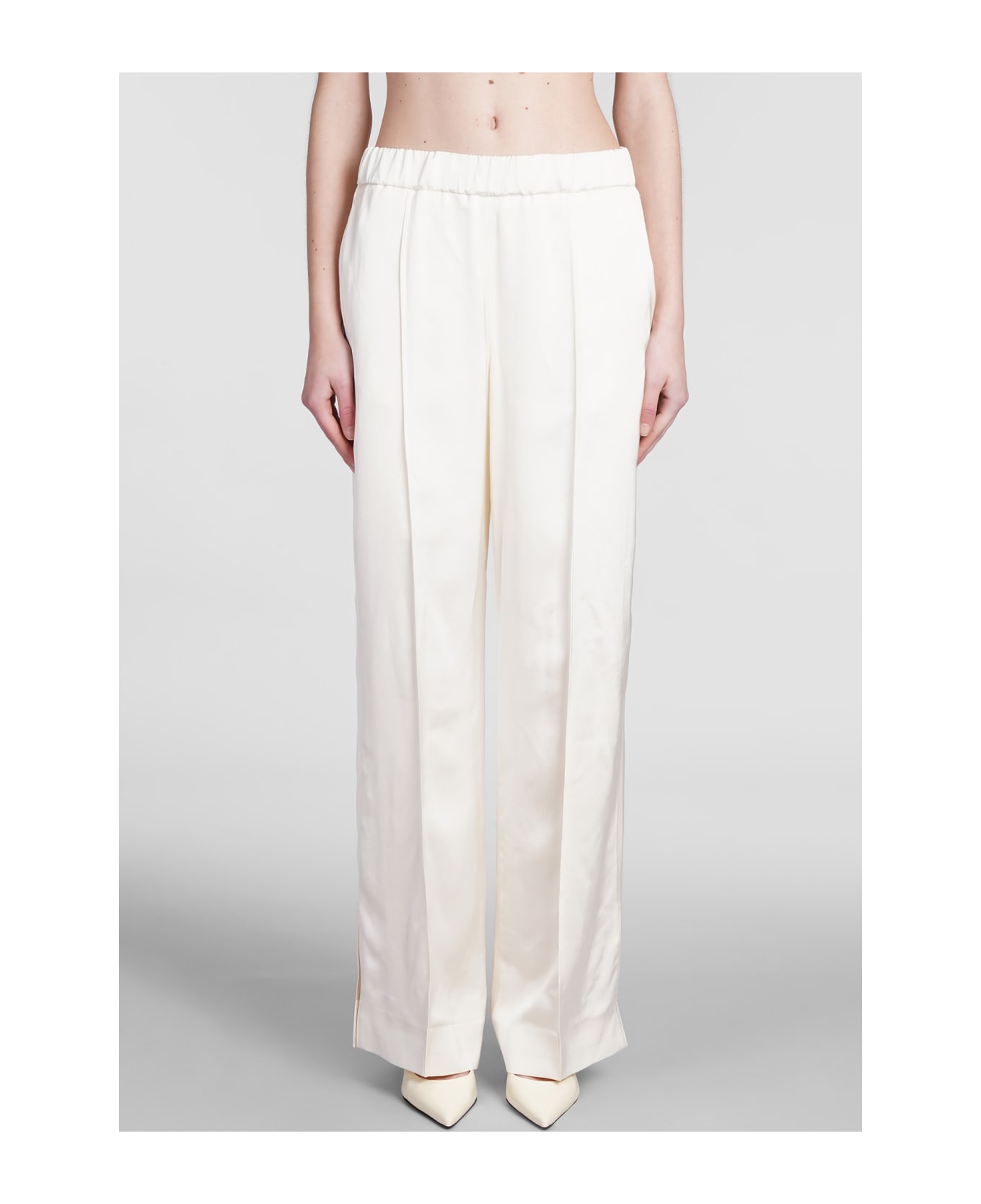 Pants in white viscose, pence, elastic waist, four pockets, 100% Viscose, Made in Italy, Model is 180 cm and wears 36