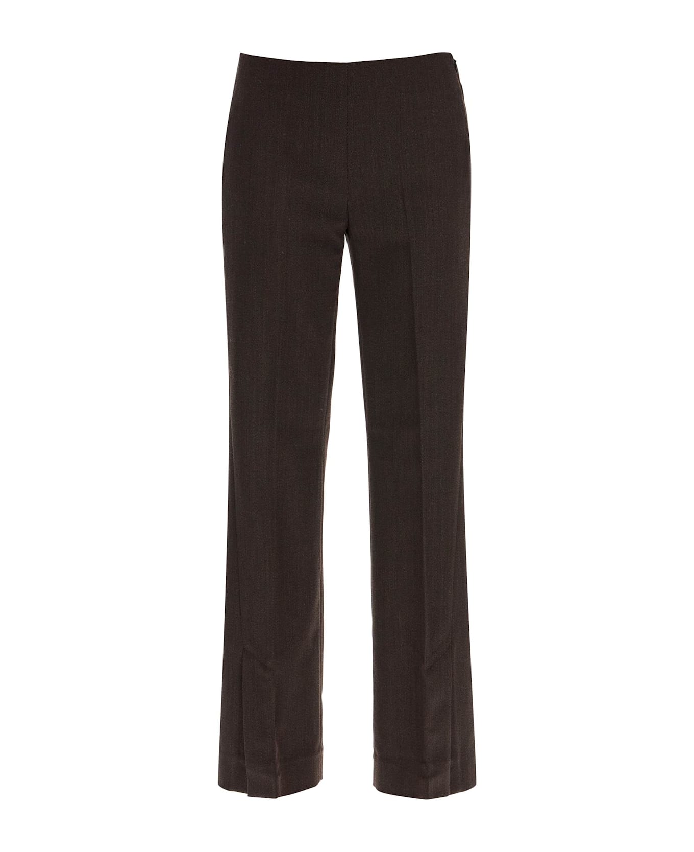 These low-waisted Filippa K trousers are made of stretch wool twill with a straight cut and pressed crease. They stand out for their twisted side seams, highlighted by slits at the bottom. Featuring welt back pockets and an invisible zip on the side. The model is 177 cm tall and wears EU size 36.