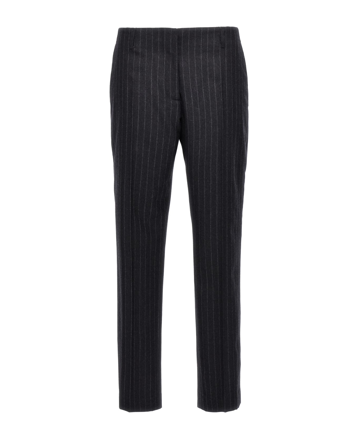 'Paola' pinstripe wool pants, cigarette leg with pleat, hook and button zip closure, pockets.