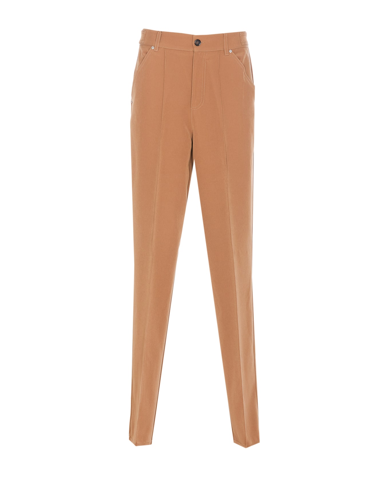 Pinko brown Pentola pants, zip and buttons closure, straight leg, contrasting stitches