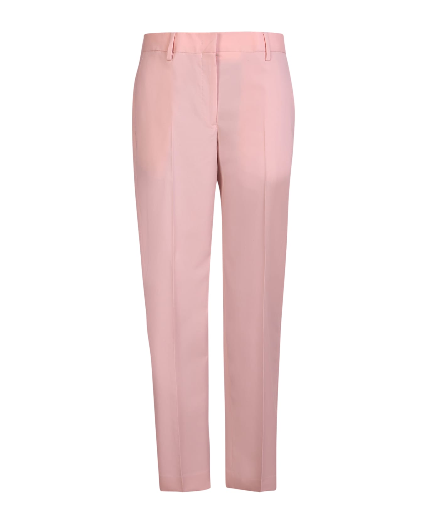 Mid rise. Concelead front fastening. Two side slit pockets. Rear welt pocket. Tapered leg. Color: pink
