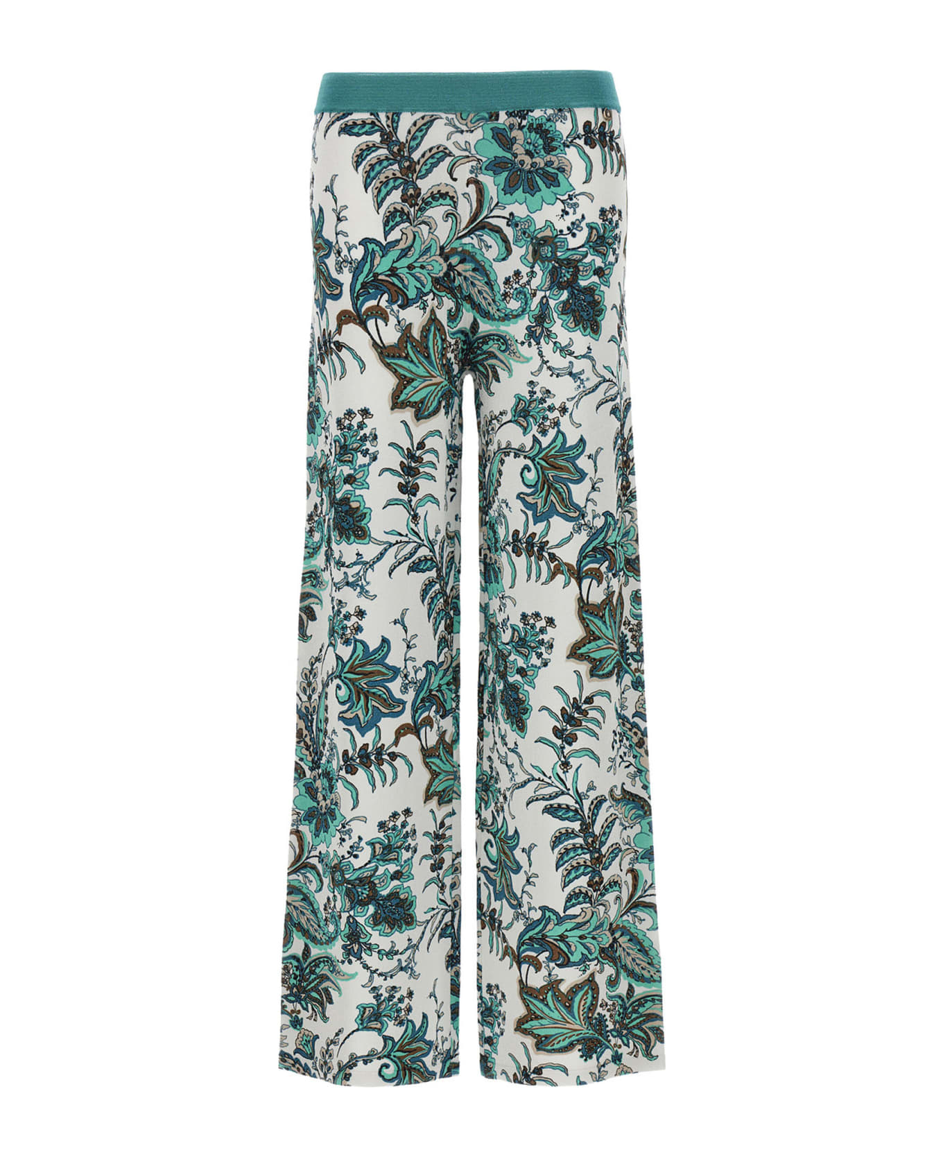 Stretch viscose knit pants with all over print, elastic waistband and a loose leg.