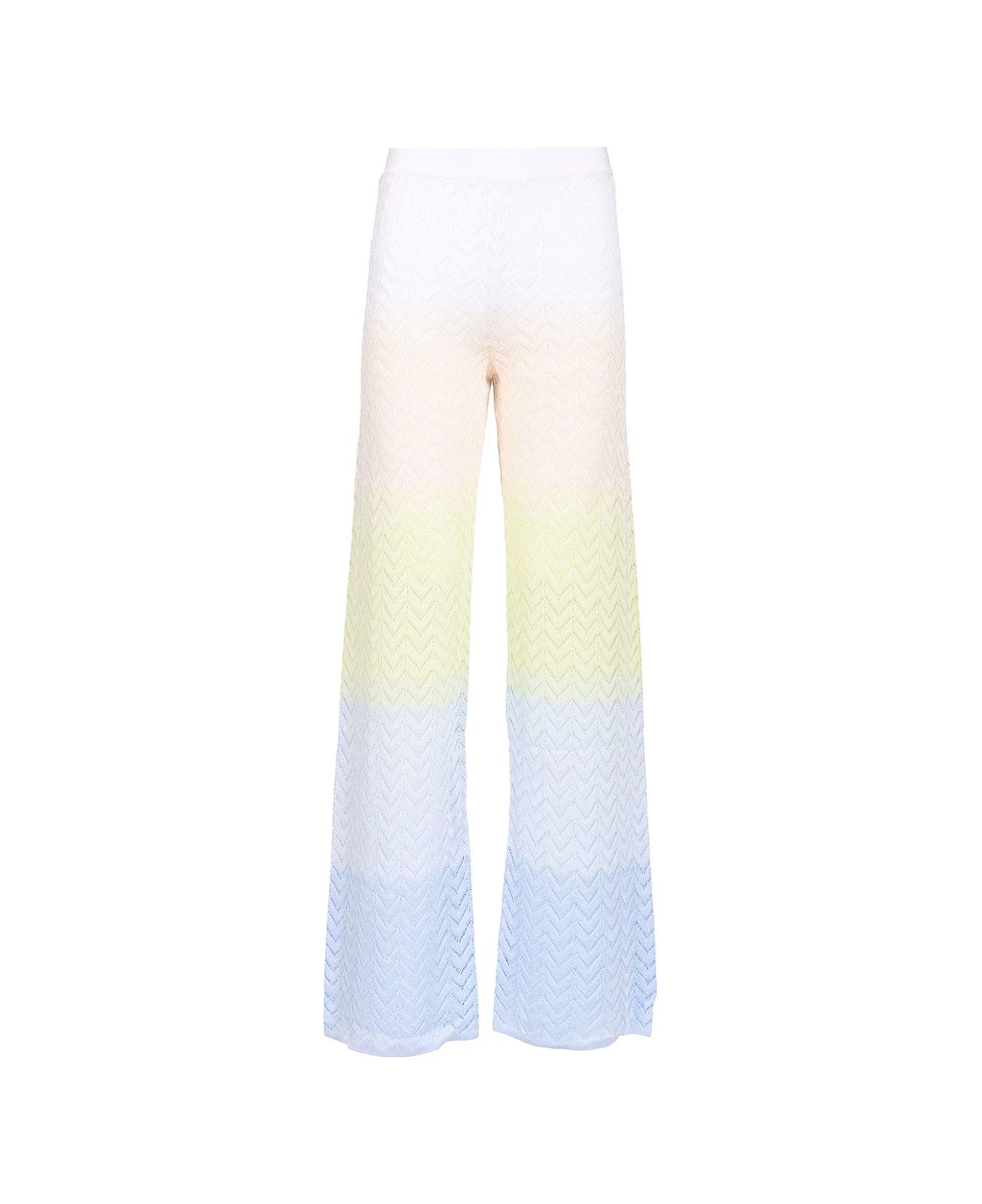Rainbow gradient chevron viscose knit pants by Missoni. Wide leg.