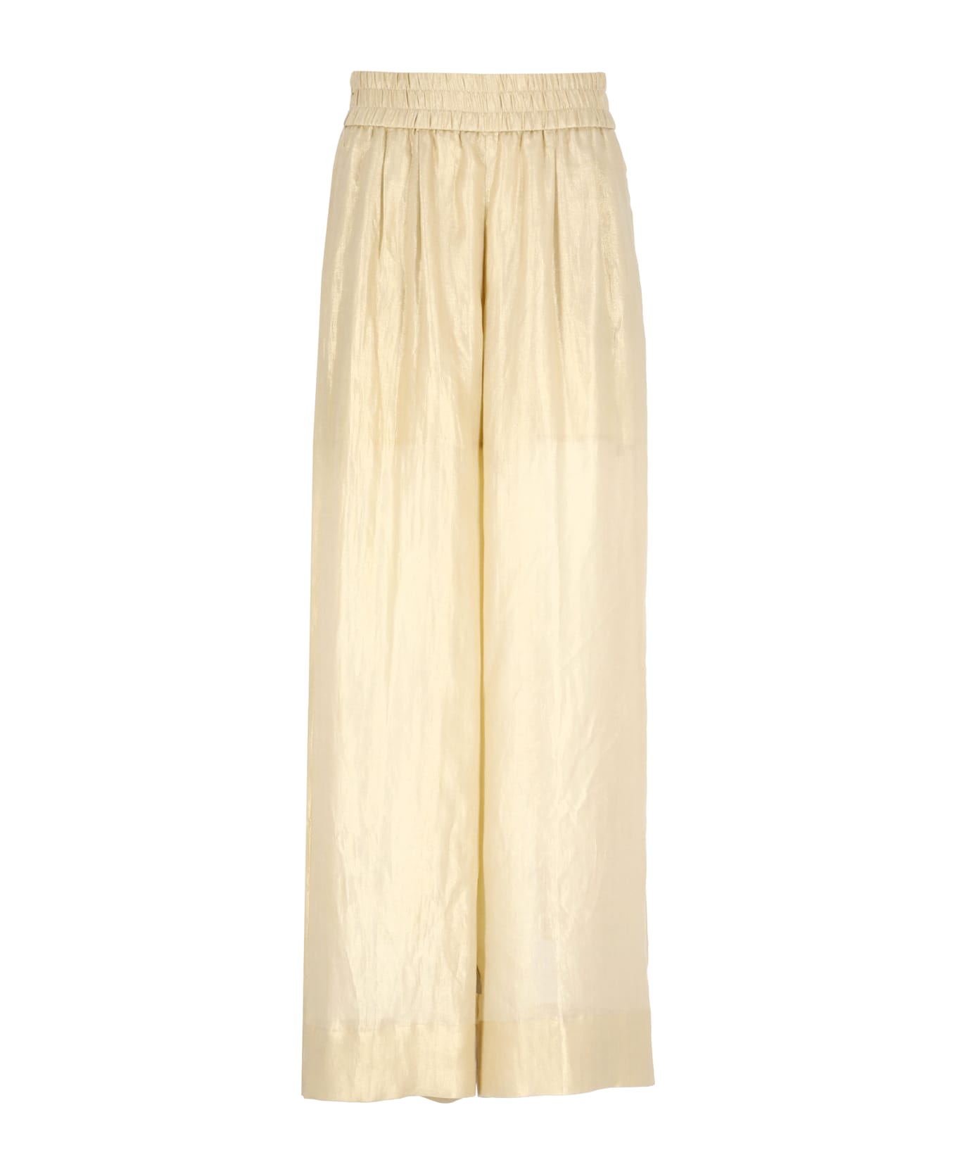 - Golden Peserico Aurea ramie pants for woman - Elastic waist - Two rear pockets - Two side slit pockets Composition: 100% Ramie Lining:, 61% Acetate, 39% Cupro