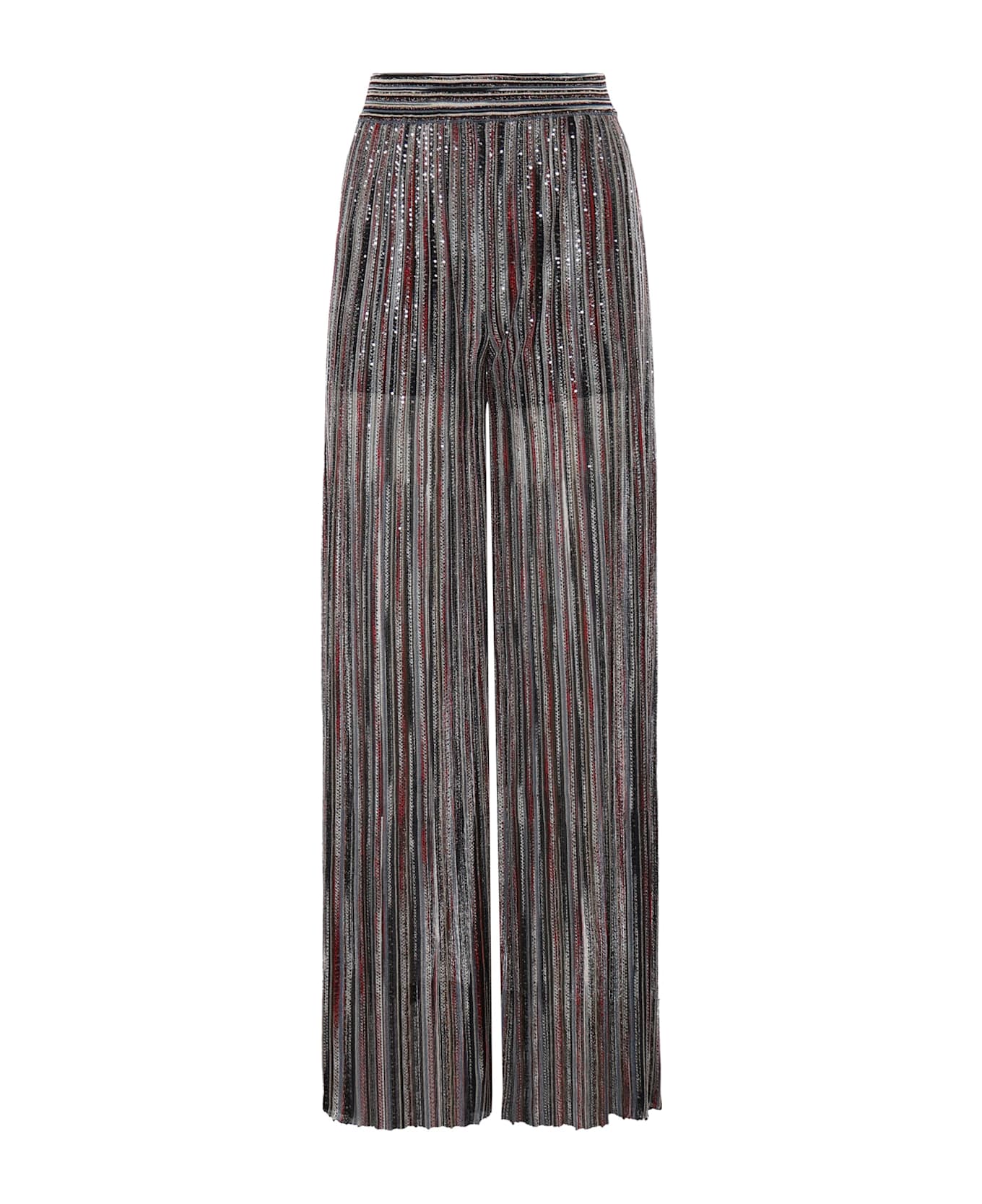 Ribbed Viscose Blend Trousers With Sequins